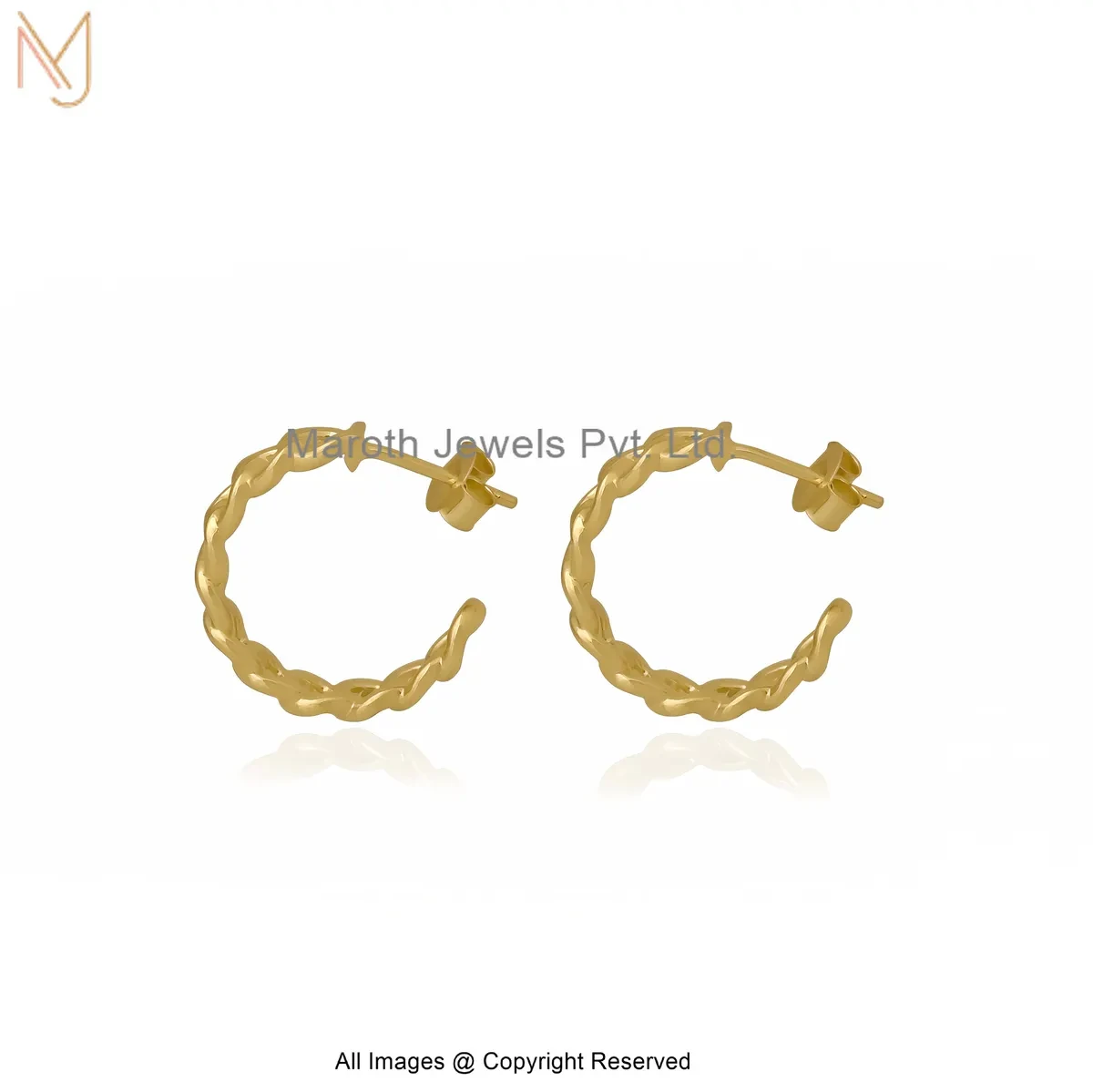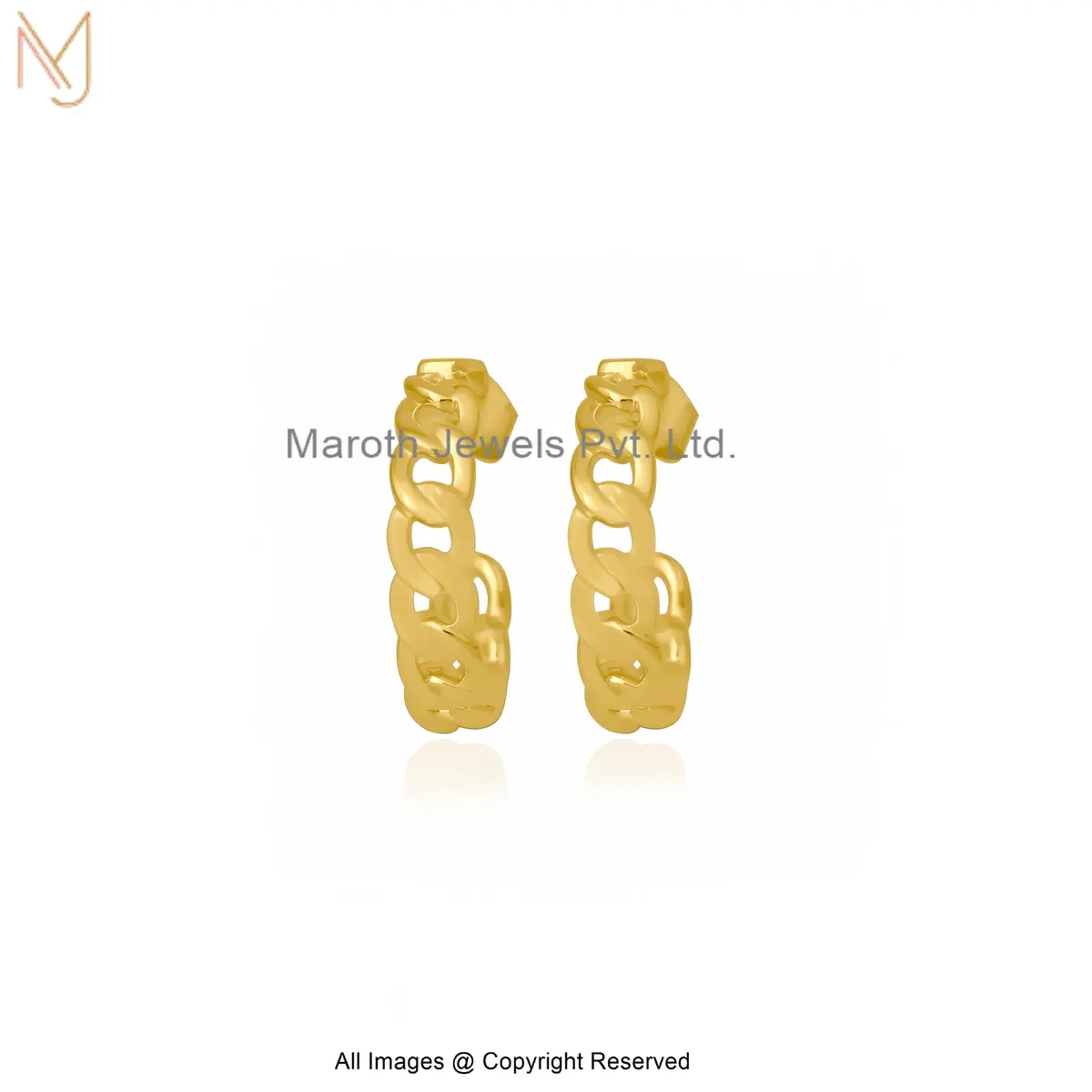 925 Silver Yellow Gold Plated Gold Finish Chunky Link Hoop Earrings Jewelry Supplier