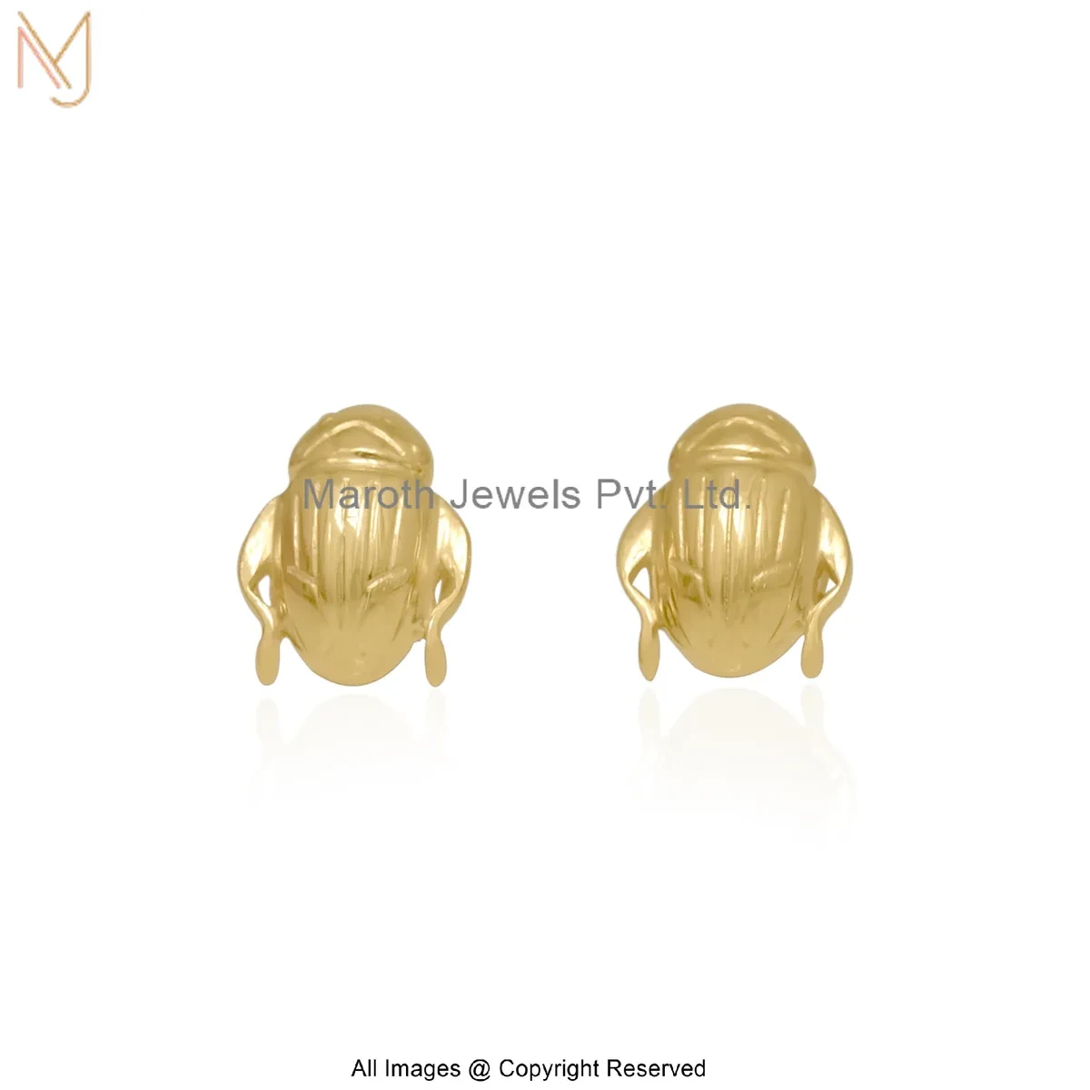 925 Silver Yellow Gold Plated Gold Scarab Beetle Stud Earring Custom Jewelry