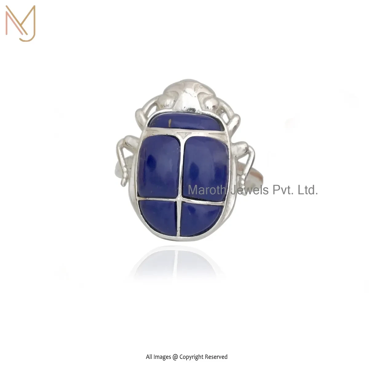925 Silver Yellow Gold Plated Labradorite Scarab Charm Ring Manufacturer