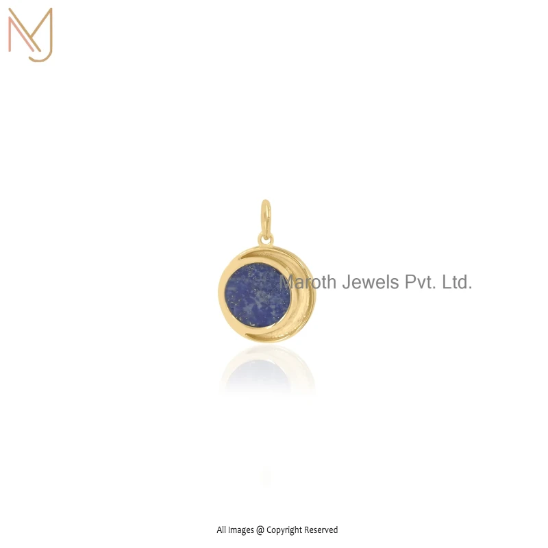 925 Silver Yellow Gold Plated Lapiz Lazuli Cubic Zircon Star Moon Charm Pendant Jewelry Supplier