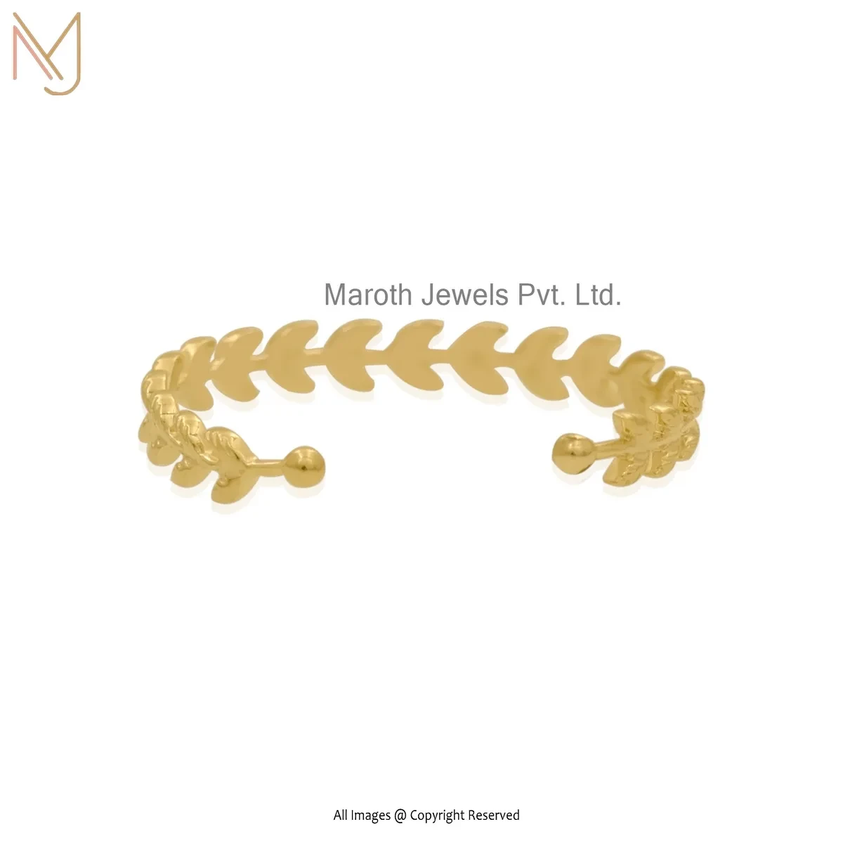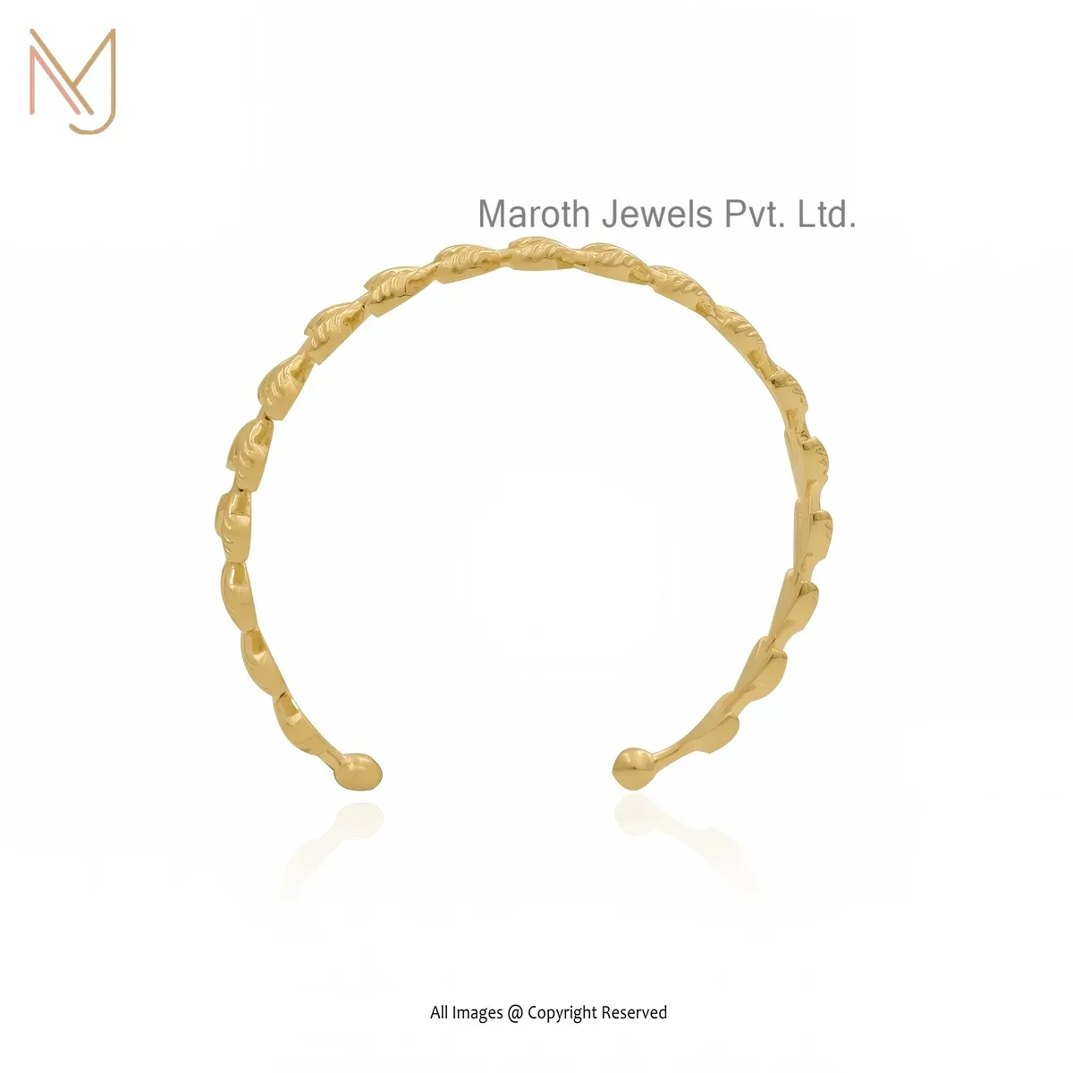 925 Silver Yellow Gold Plated Leaf Cuff Bangle Jewelry Supplier