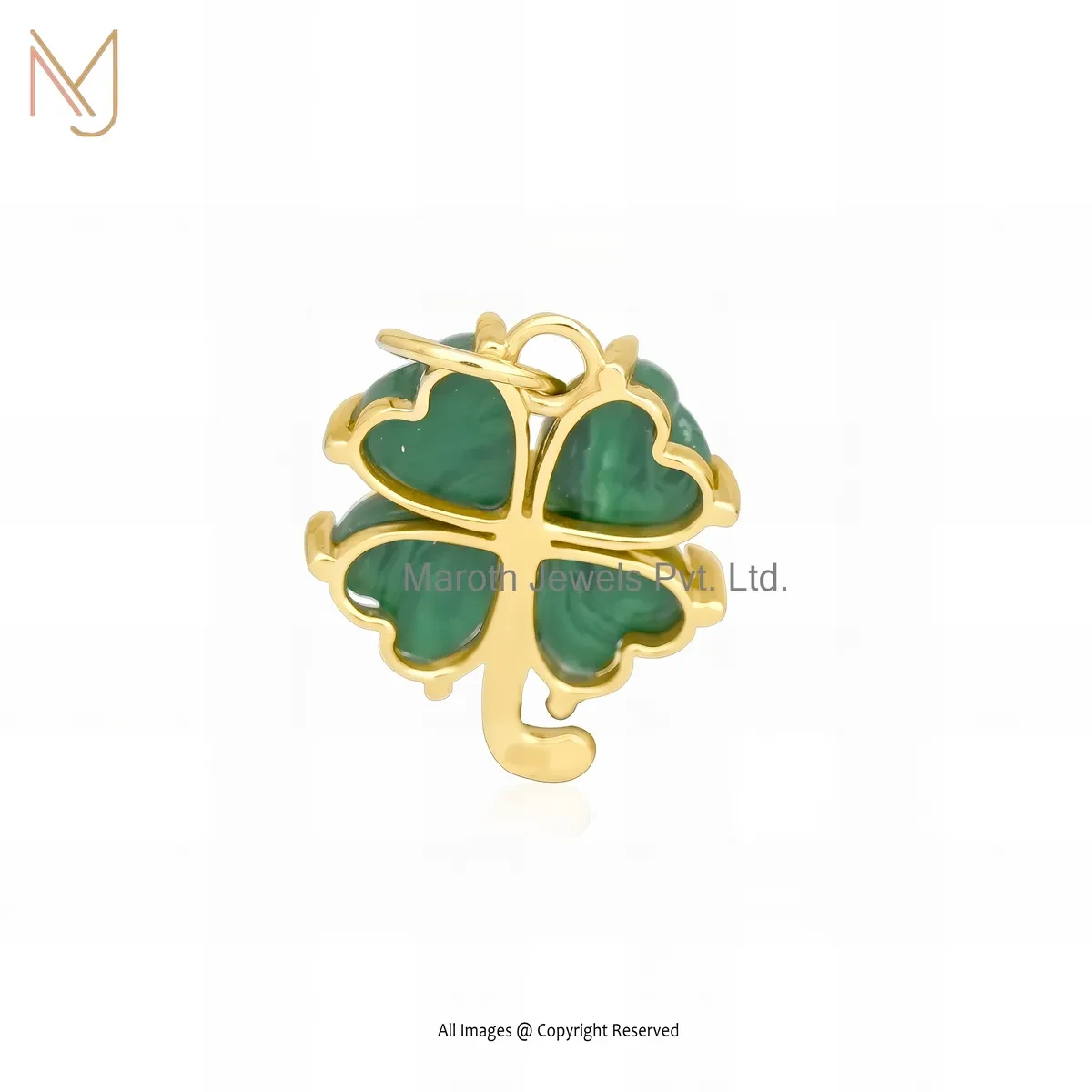 925 Silver Yellow Gold Plated Malachite Heart Shape Leaf Charm Pendant Custom Jewelry