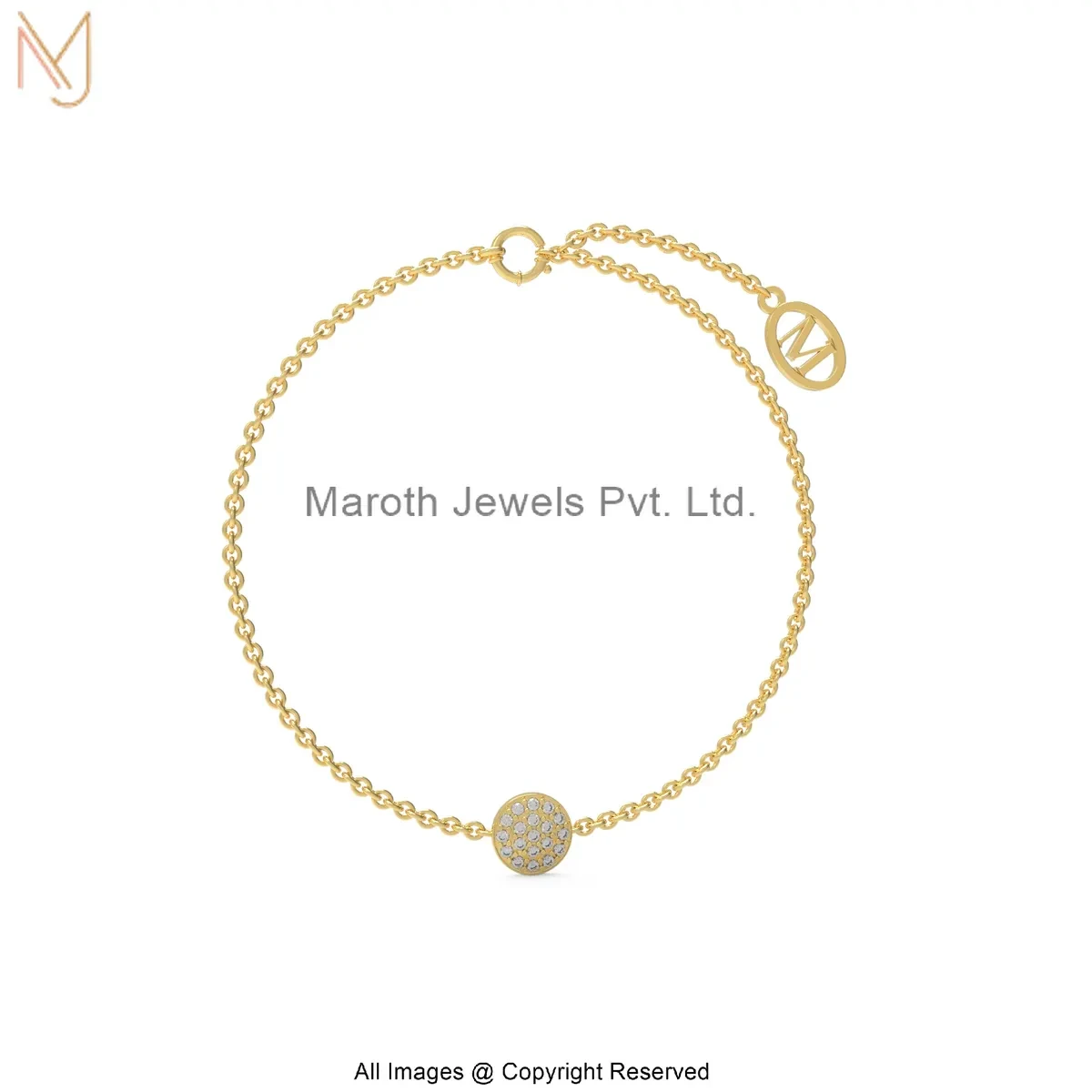 925 Silver Yellow Gold Plated Moissanite Diamond Disc Charm Bracelet Manufacturer