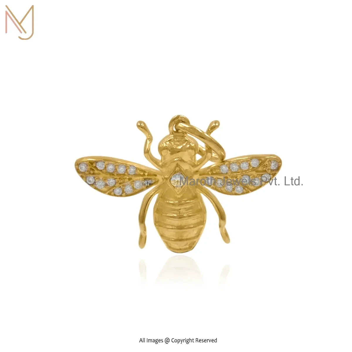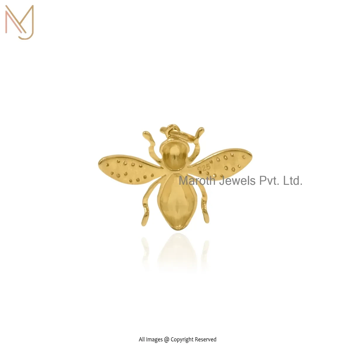 925 Silver Yellow Gold Plated Moissanite Honey Bee Pendant Manufacturer
