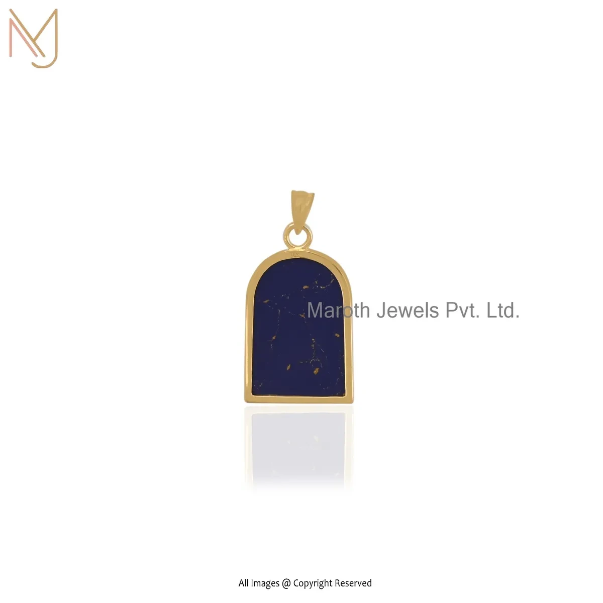 925 Silver Yellow Gold Plated Moissanite & Lapiz Lazuli Carved Gemstone Desginer Pendant Jewelry Supplie