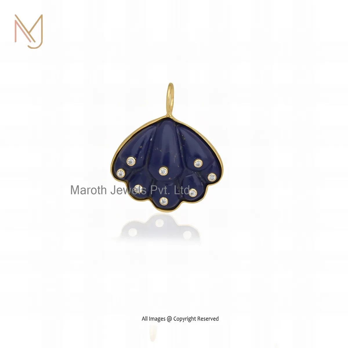 925 Silver Yellow Gold Plated Moissanite & Lapiz Lazuli Gemstone Shell Pendant Jewelry Supplier