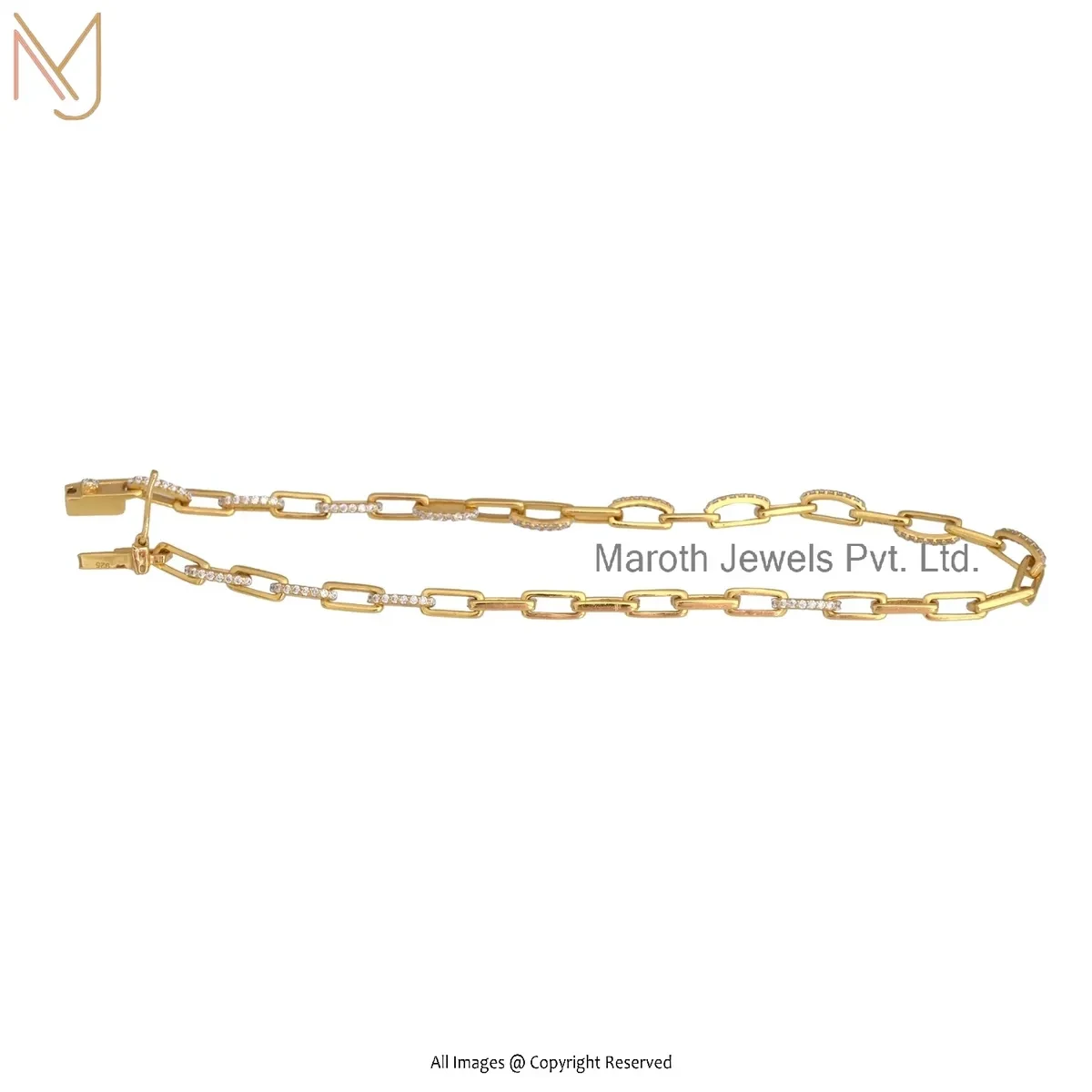 925 Silver Yellow Gold Plated Moissanite Paperclip Chain Bracelet Manufacturer