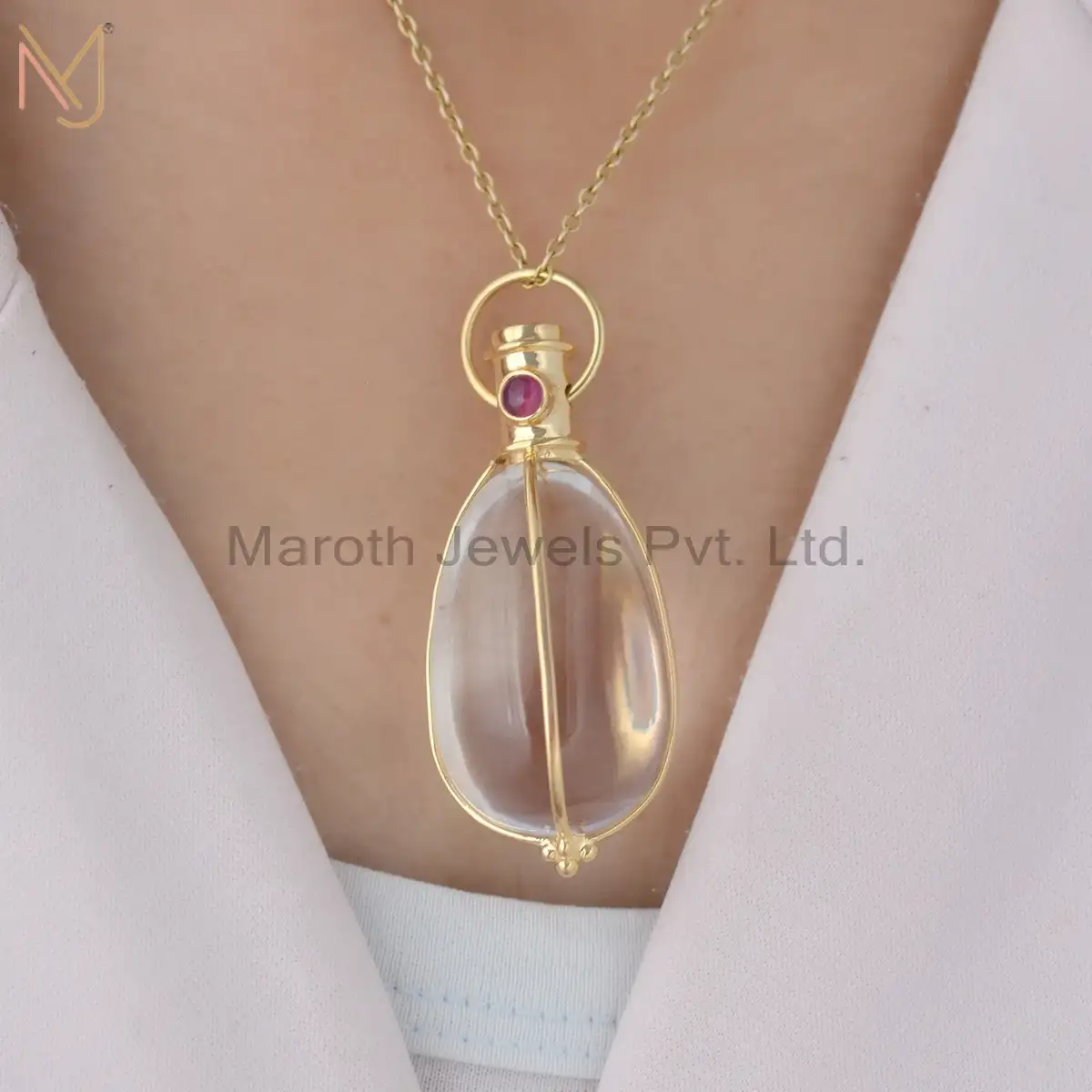 925 Silver Yellow Gold Plated Moonstone And Ruby Pendant Jewelry Supplier