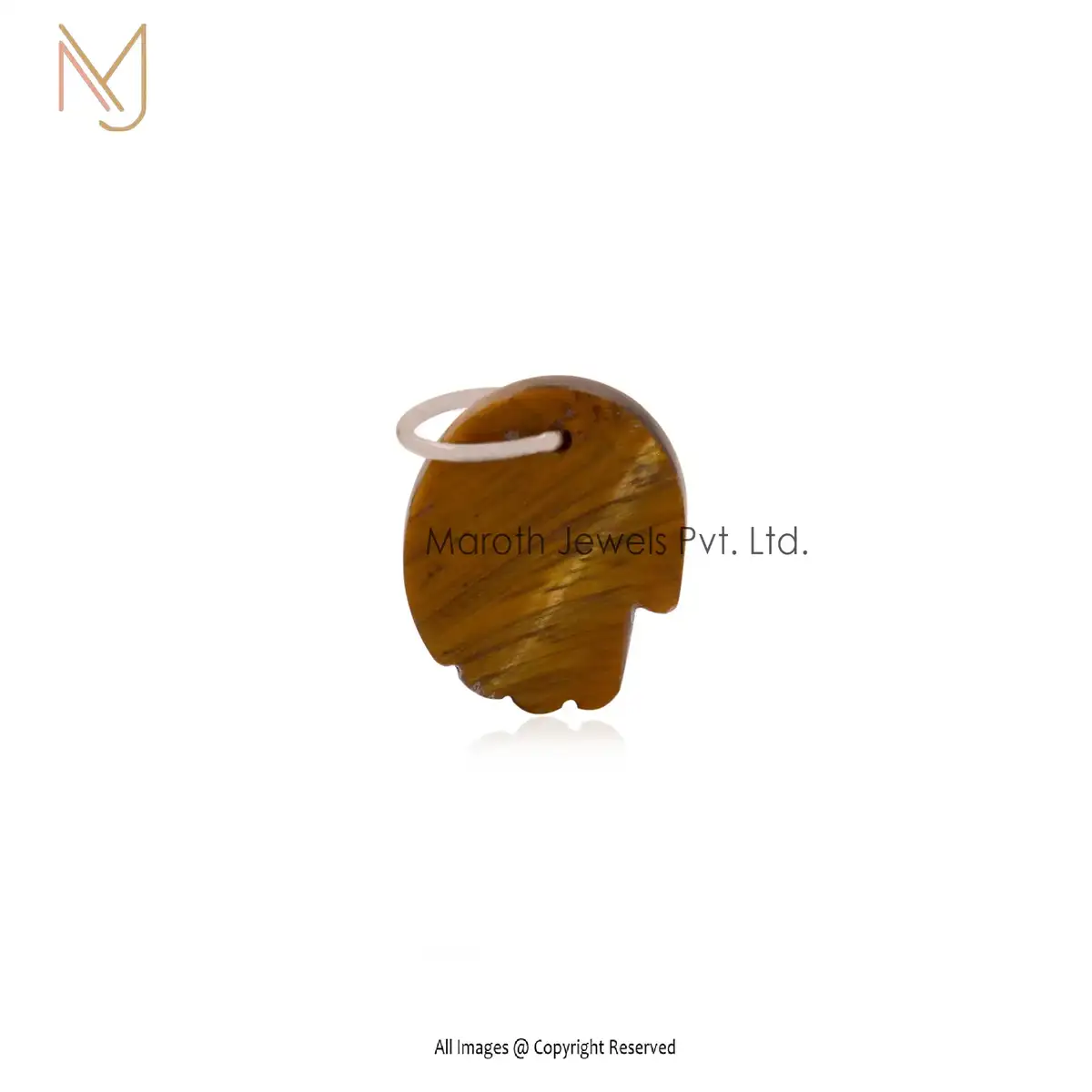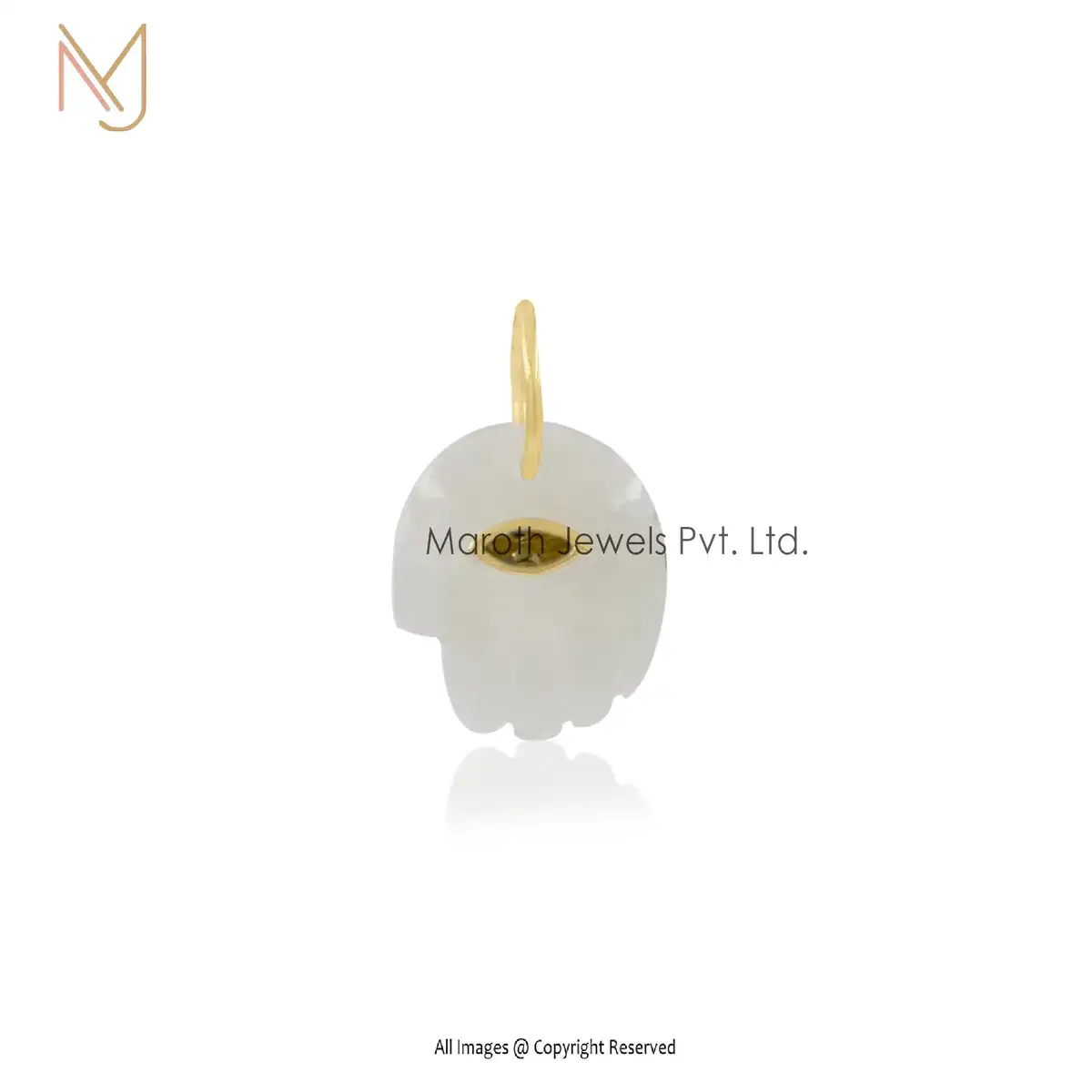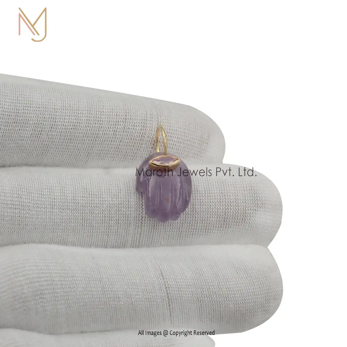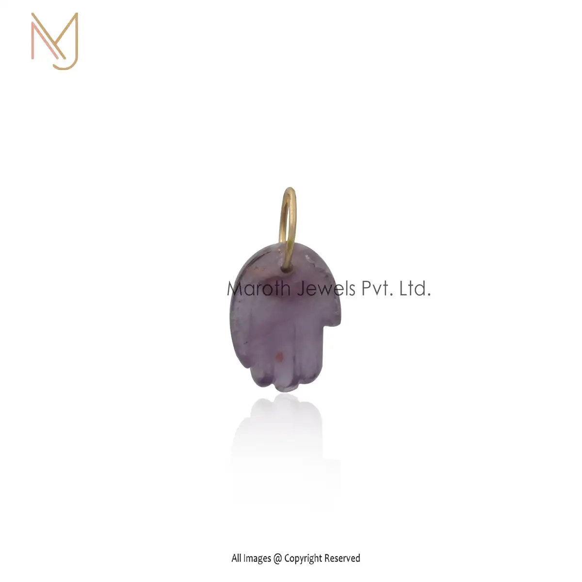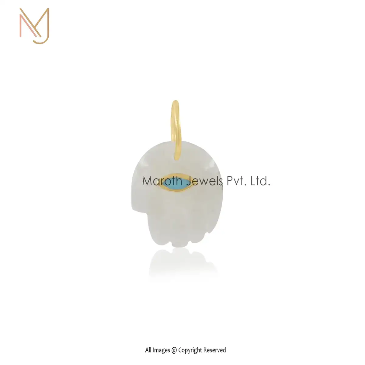 925 Silver Yellow Gold Plated Moonstone & Yellow Sapphire Tiger Eye Figa Hand Pendant USA