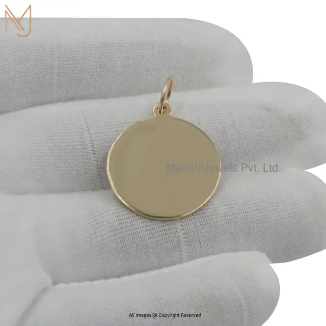 925 Silver Yellow Gold Plated Mother Initials Engraved Disc Pendant USA
