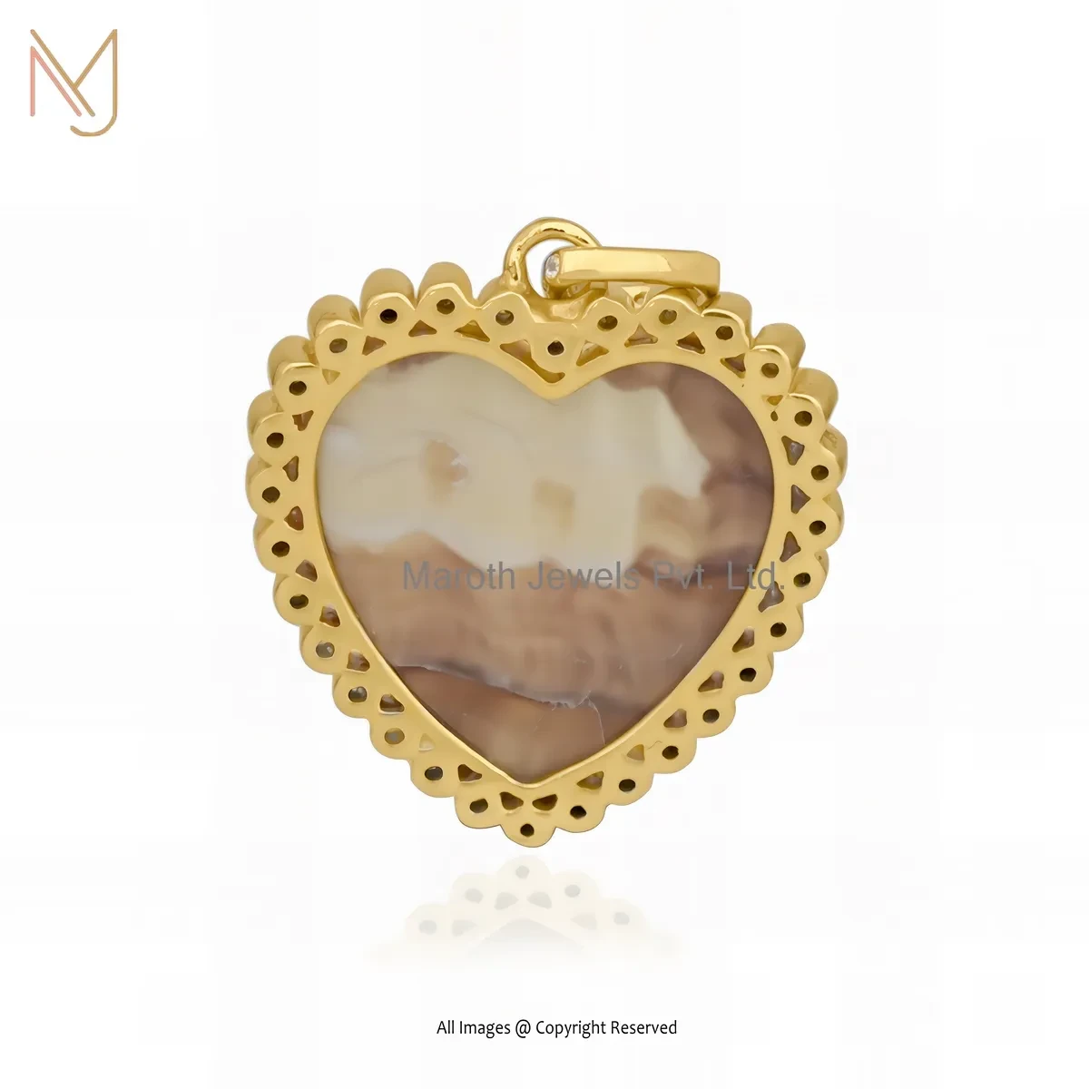 925 Silver Yellow Gold Plated Mother of Pearl Gemstone And Moissanite Heart Pendant USA