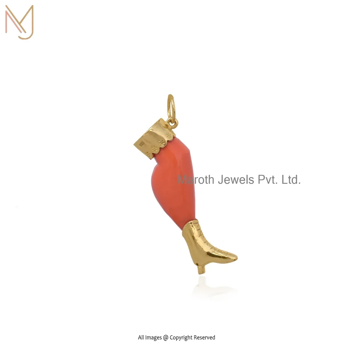 925 Silver Yellow Gold Plated Orange Coral Gemstone Leg Charm Pendant Jewelry Supplier