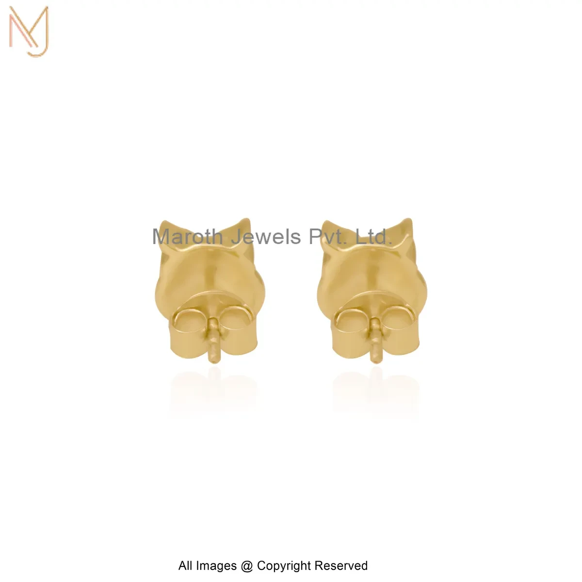 925 Silver Yellow Gold Plated Owl Stud Earrings Custom Jewelry
