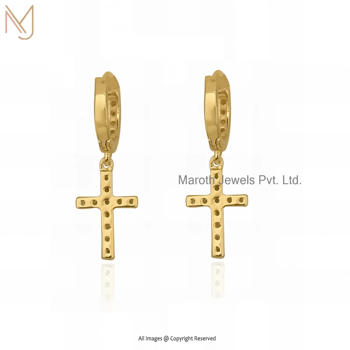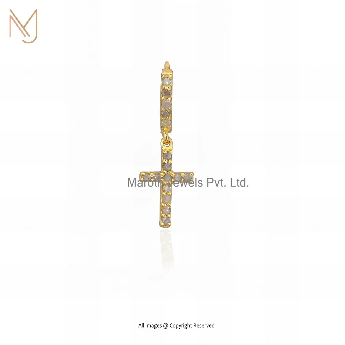 925 Silver Yellow Gold Plated Pave Diamond Cross Hoop Earring Custom Jewelry