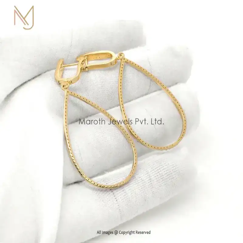 Wholesale 925 Silver Yellow Gold Plated Pave Diamond Drop Earrings Jewelry Manufacturer
