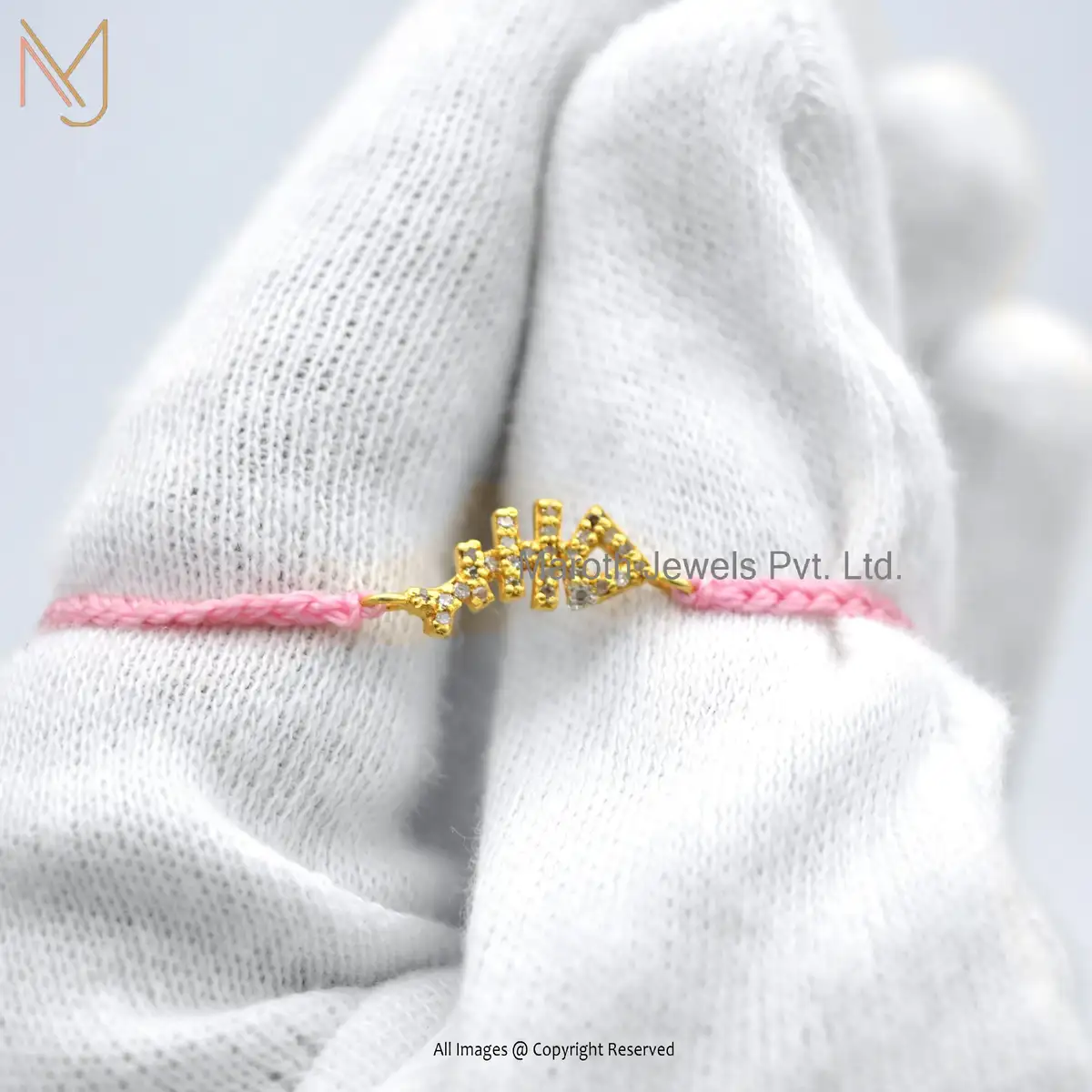 925 Silver Yellow Gold Plated Pave Diamond Fish Bone Adjustable Bracelet Manufacturer