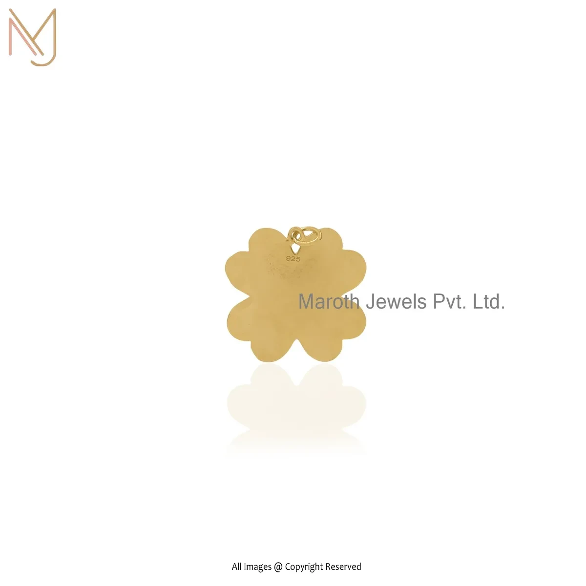 925 Silver Yellow Gold Plated Pave Diamond Four Heart Clover Pendant Jewelry Supplier