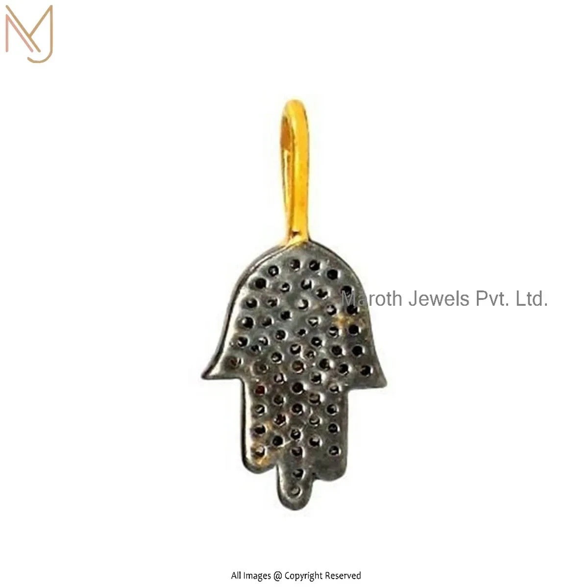 925 Silver Yellow Gold Plated Pave Diamond Hamsa Hand Pendant Manufacturer