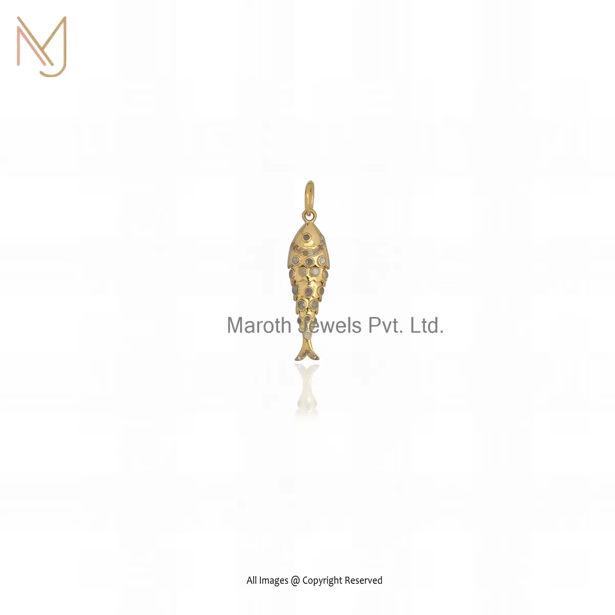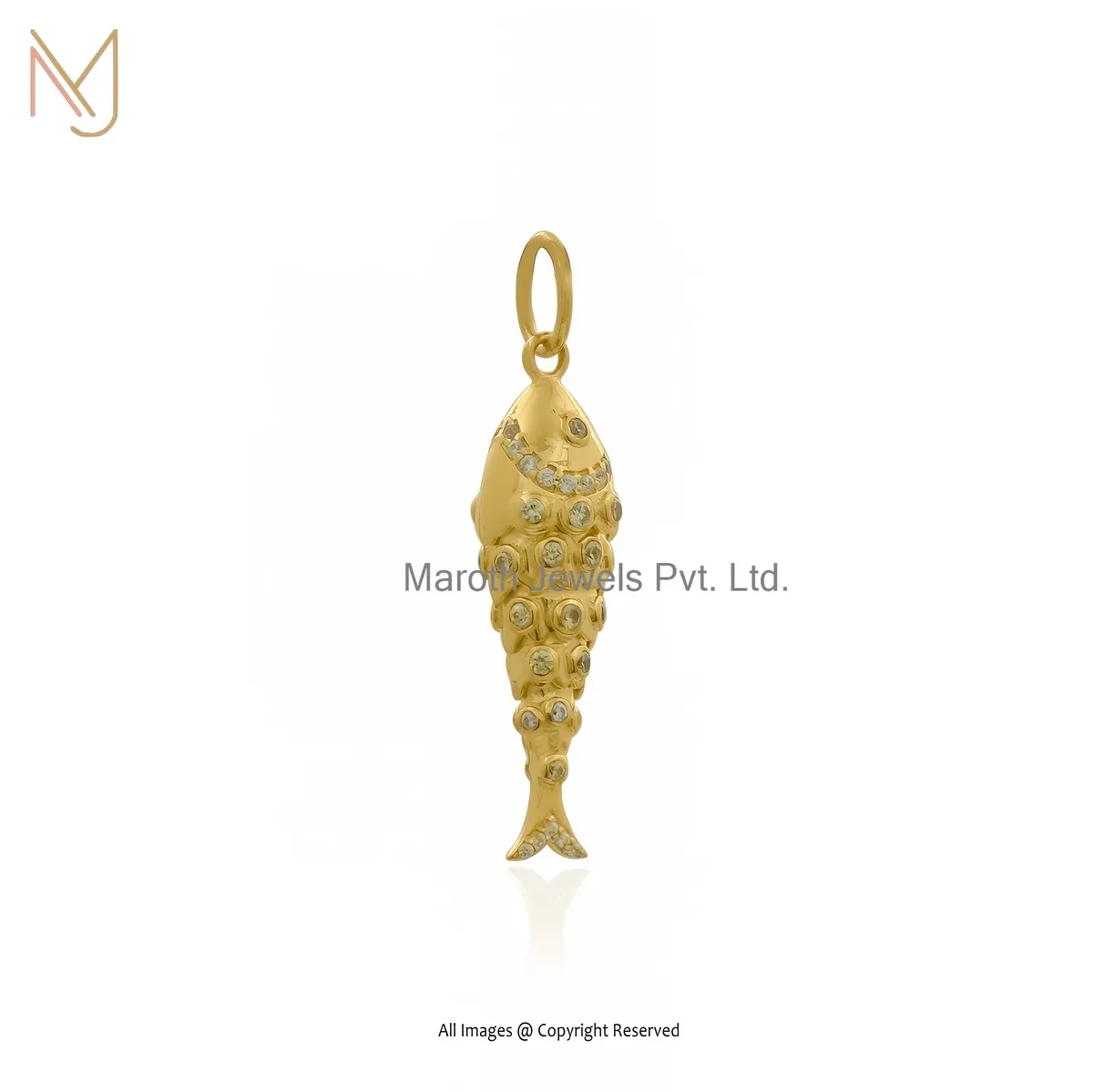 925 Silver Yellow Gold Plated Pave Diamond Moveable Fish Pendant Manufacturer