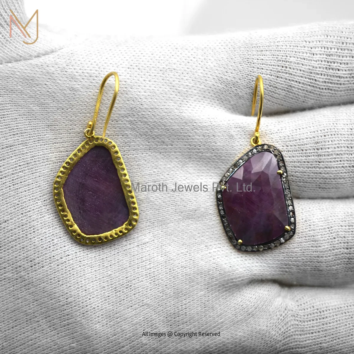 925 Silver Yellow Gold Plated Pave Diamond Ruby Dangle Earring Jewelry Manufacturer