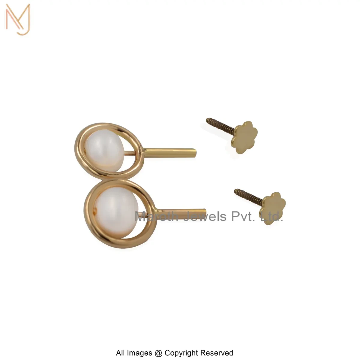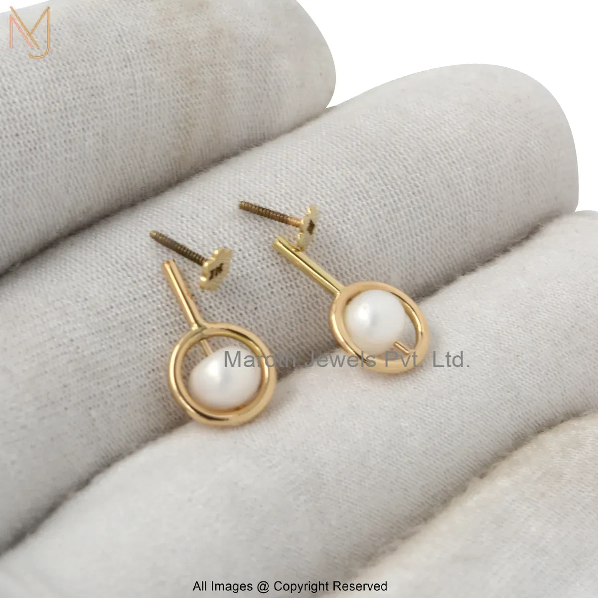 925 Silver Yellow Gold Plated Pearl Stud Earring Jewelry Supplier