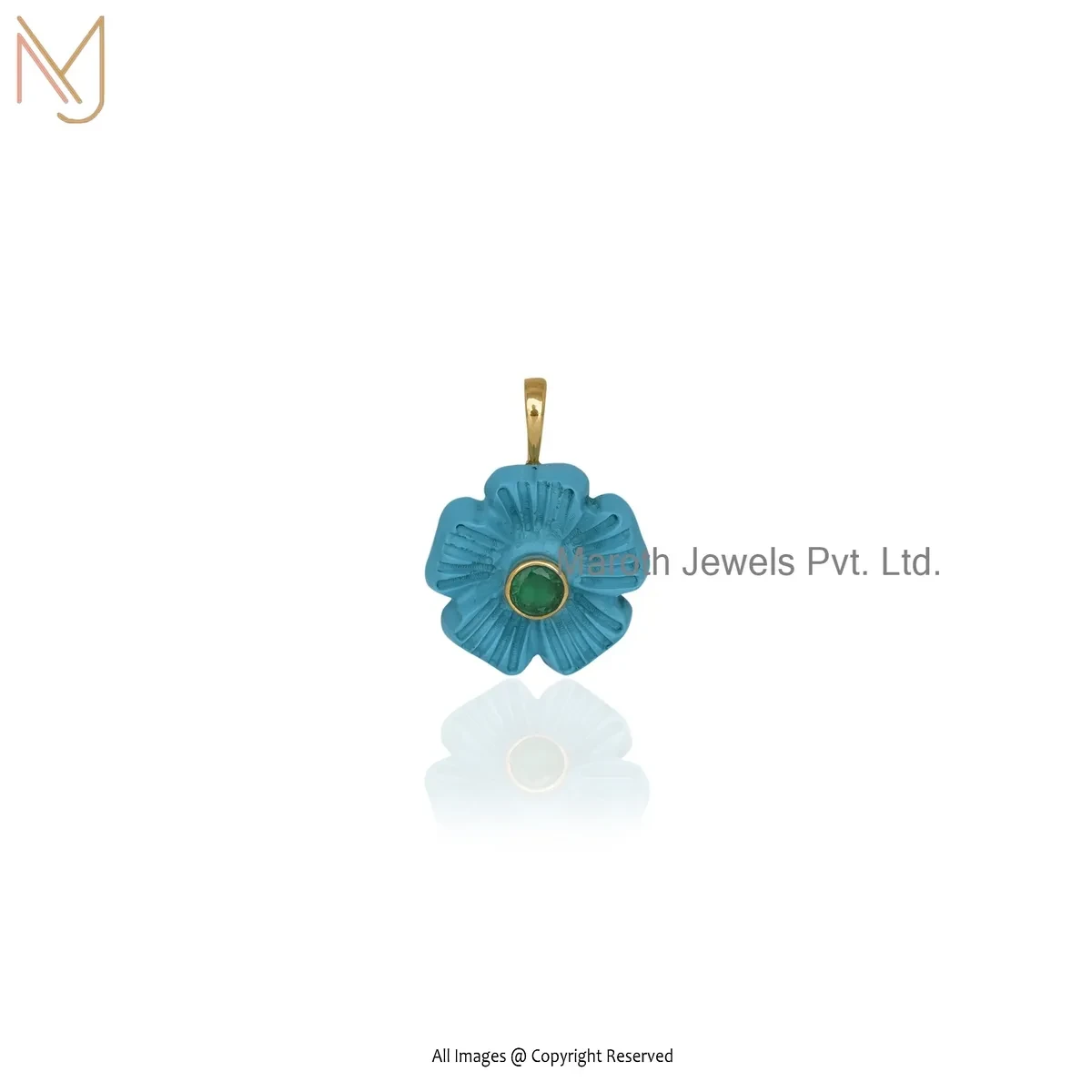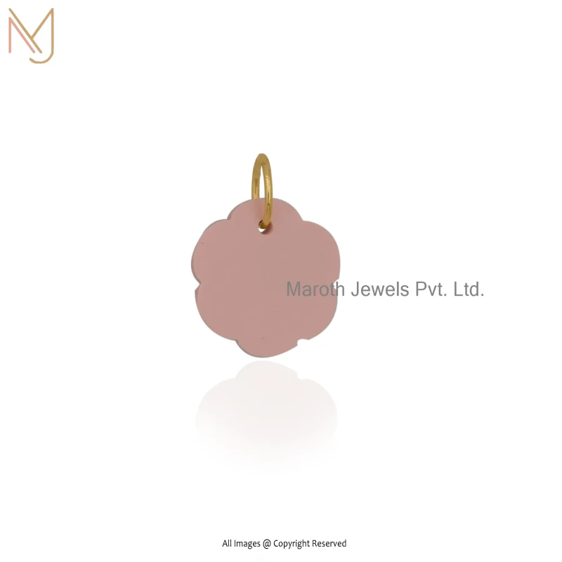 925 Silver Yellow Gold Plated Pink Opal & Cubic Zircon Flower Pendant Custom Jewelry