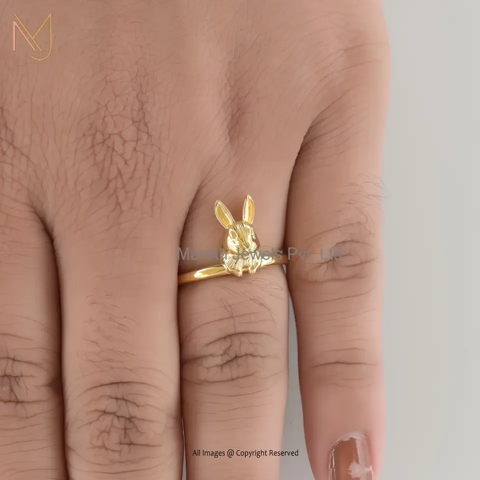 925 Silver Yellow Gold Plated Rabbit Ring Jewelry Supplier