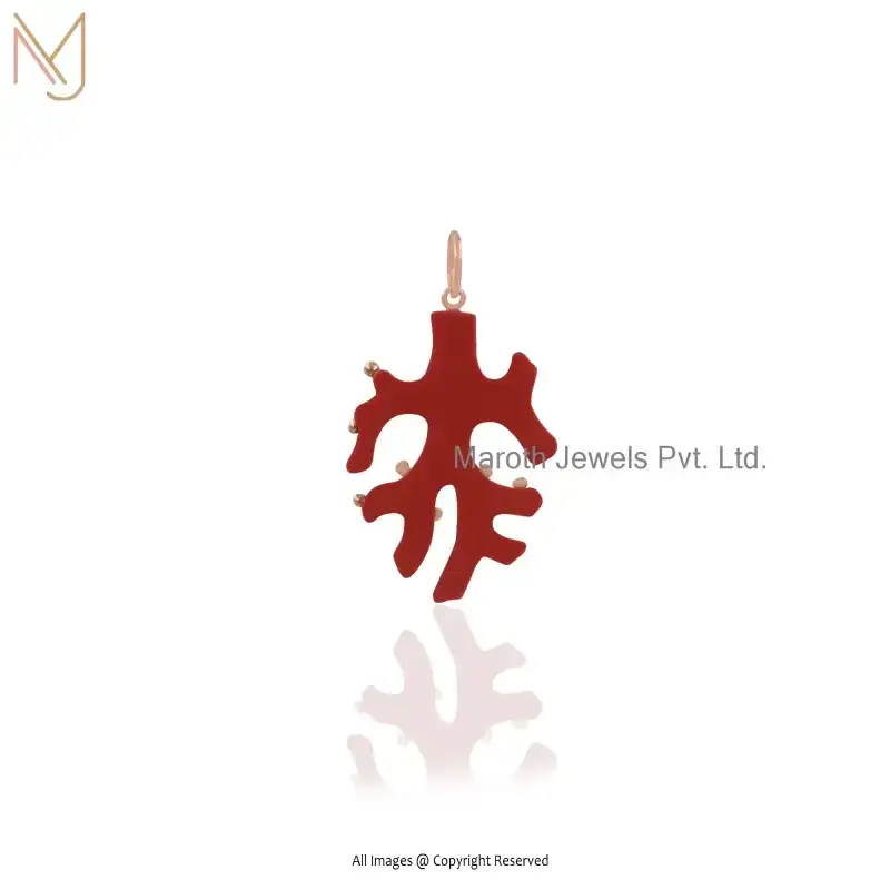 925 Silver Yellow Gold Plated Red Coral Branch Gemstone Pendant Custom Jewelry