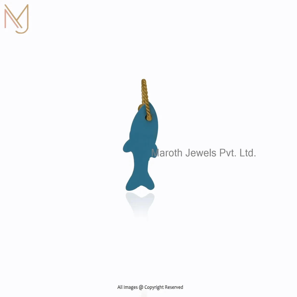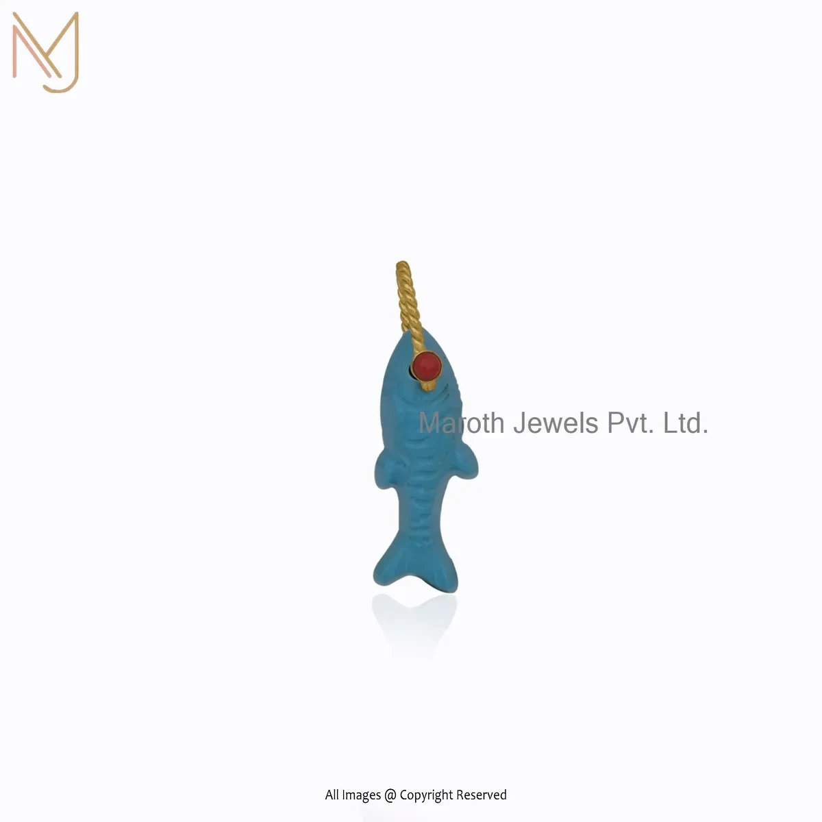 925 Silver Yellow Gold Plated Red Cubic Zircon & Larimar Gemstone Pendant USA