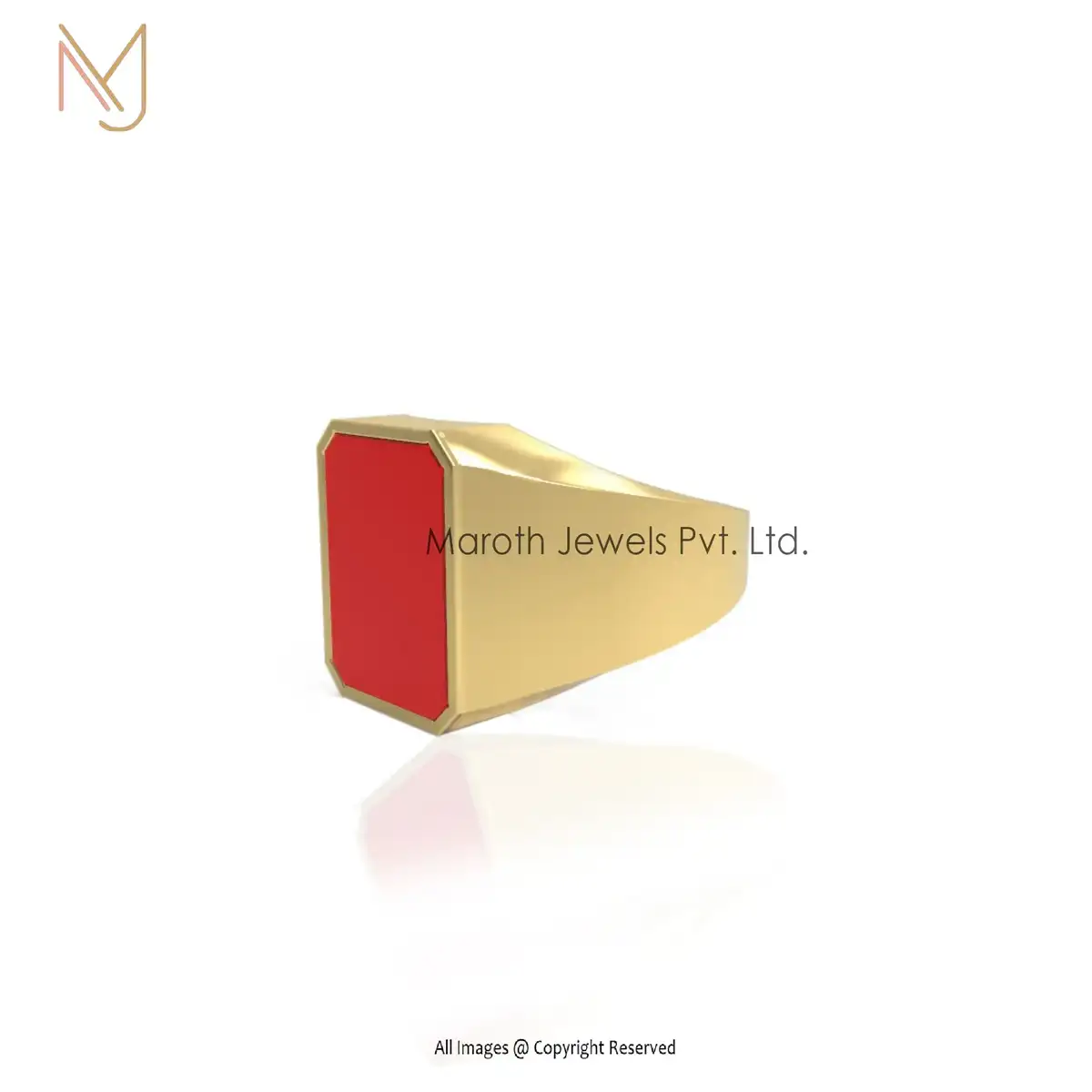 925 Silver Yellow Gold Plated Red Enamel Man Ring Jewelry Manufacturer