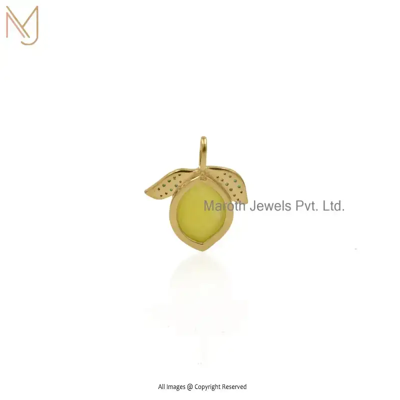 925 Silver Yellow Gold Plated Rhodium Yellow Opal & Green Cubic Zircon Gemstone Lemon Pendant USA