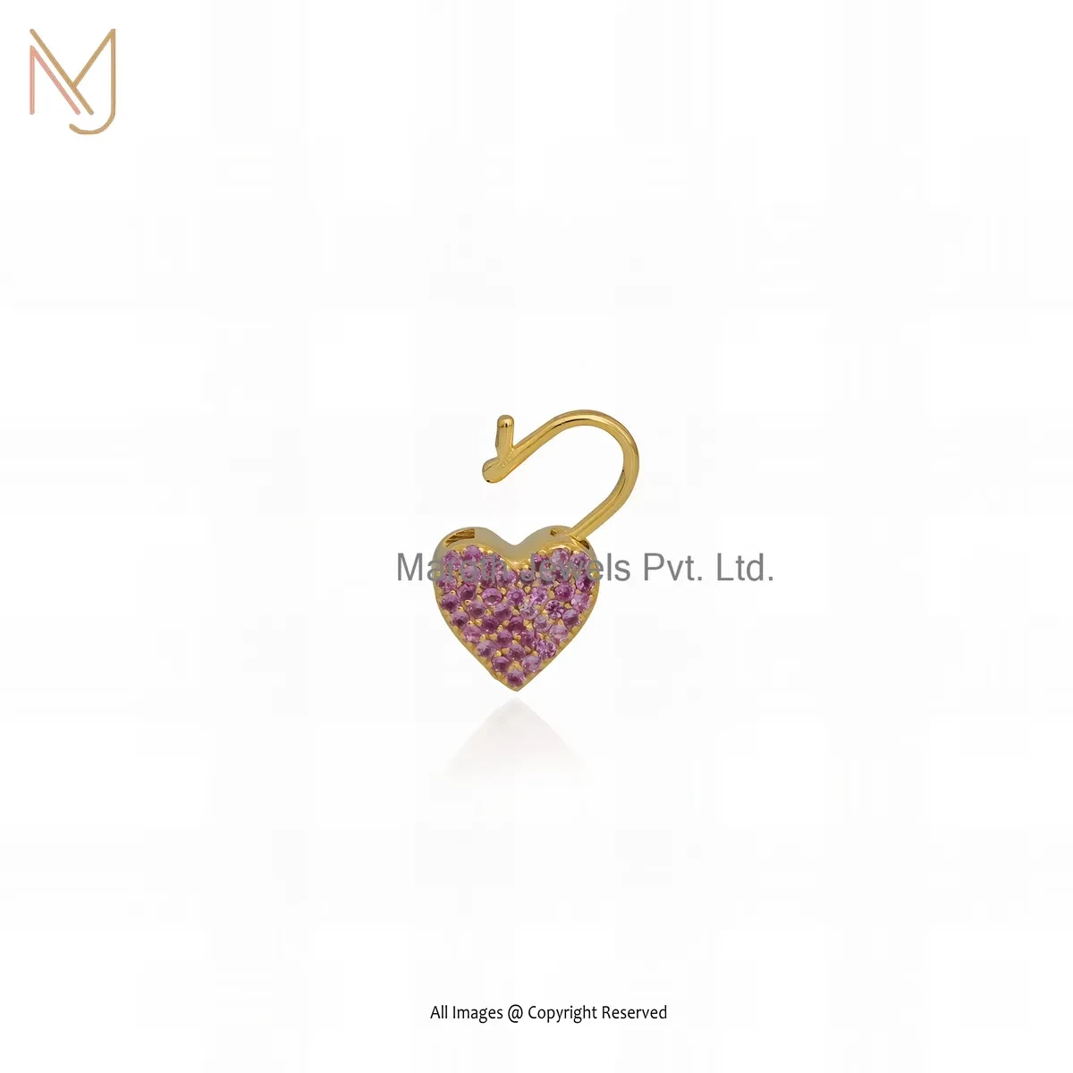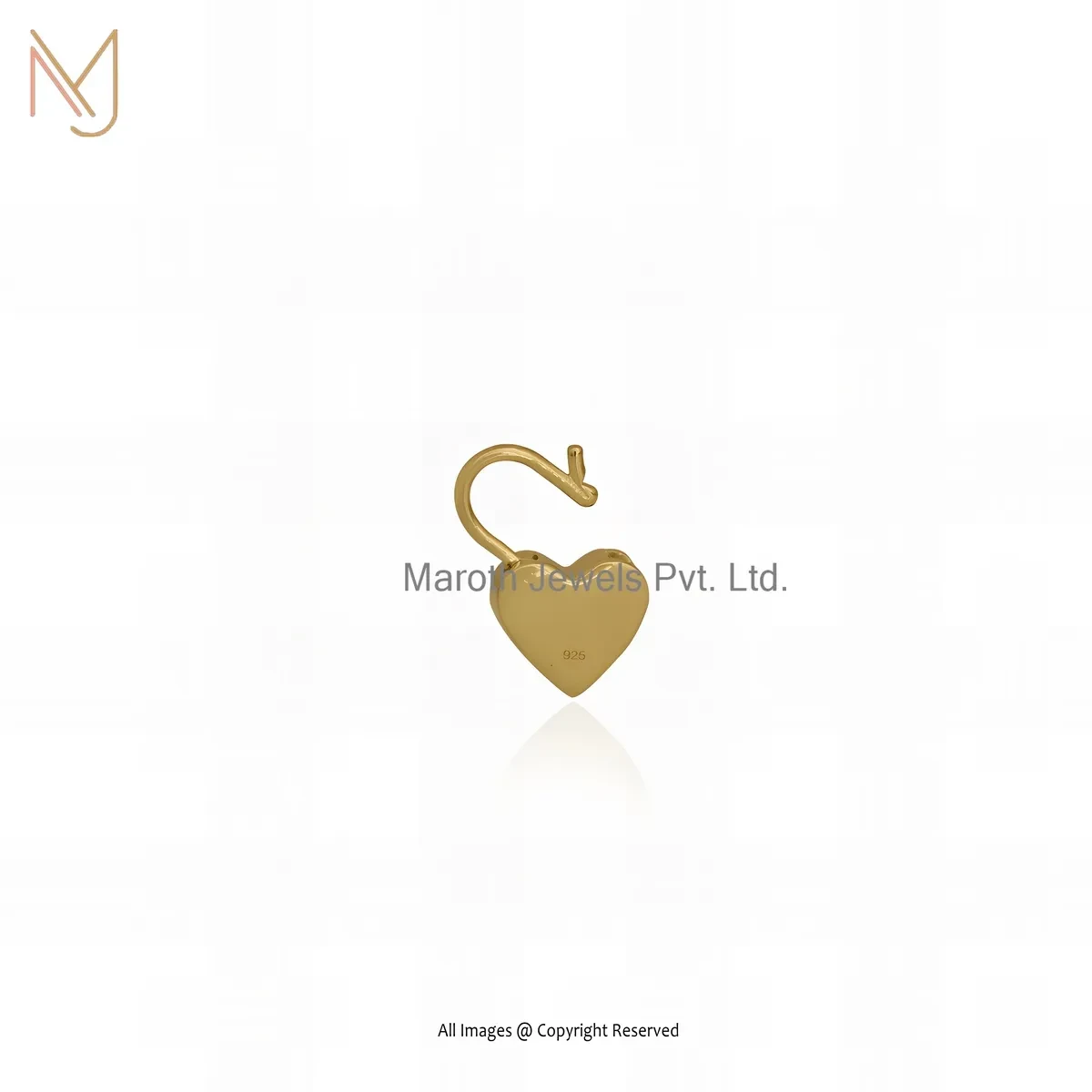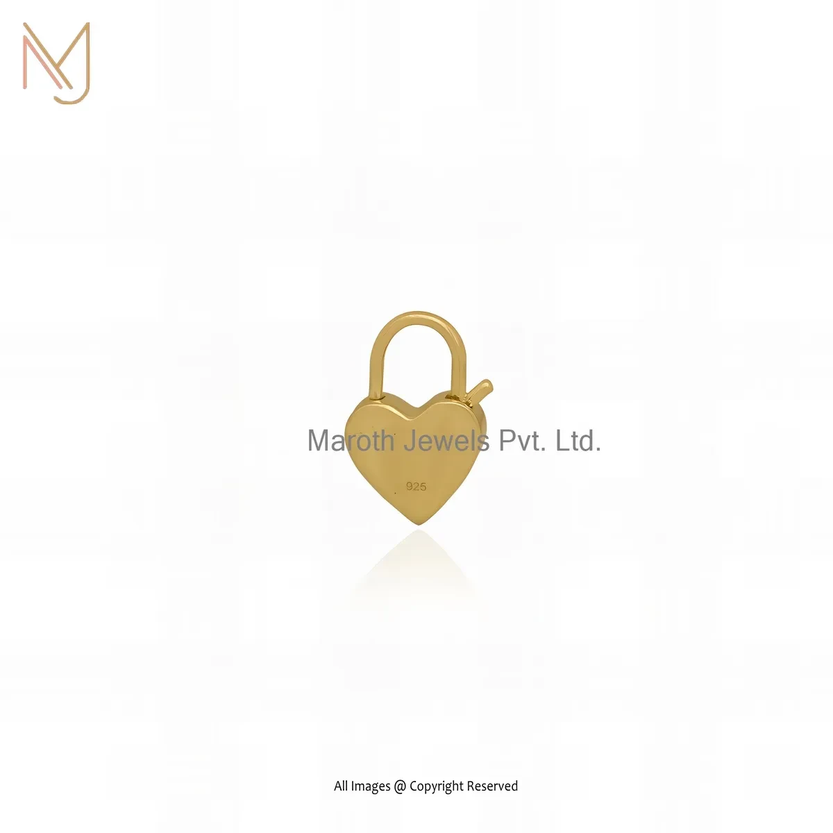 925 Silver Yellow Gold Plated Ruby Heart Padlock Pendant Custom Jewelry