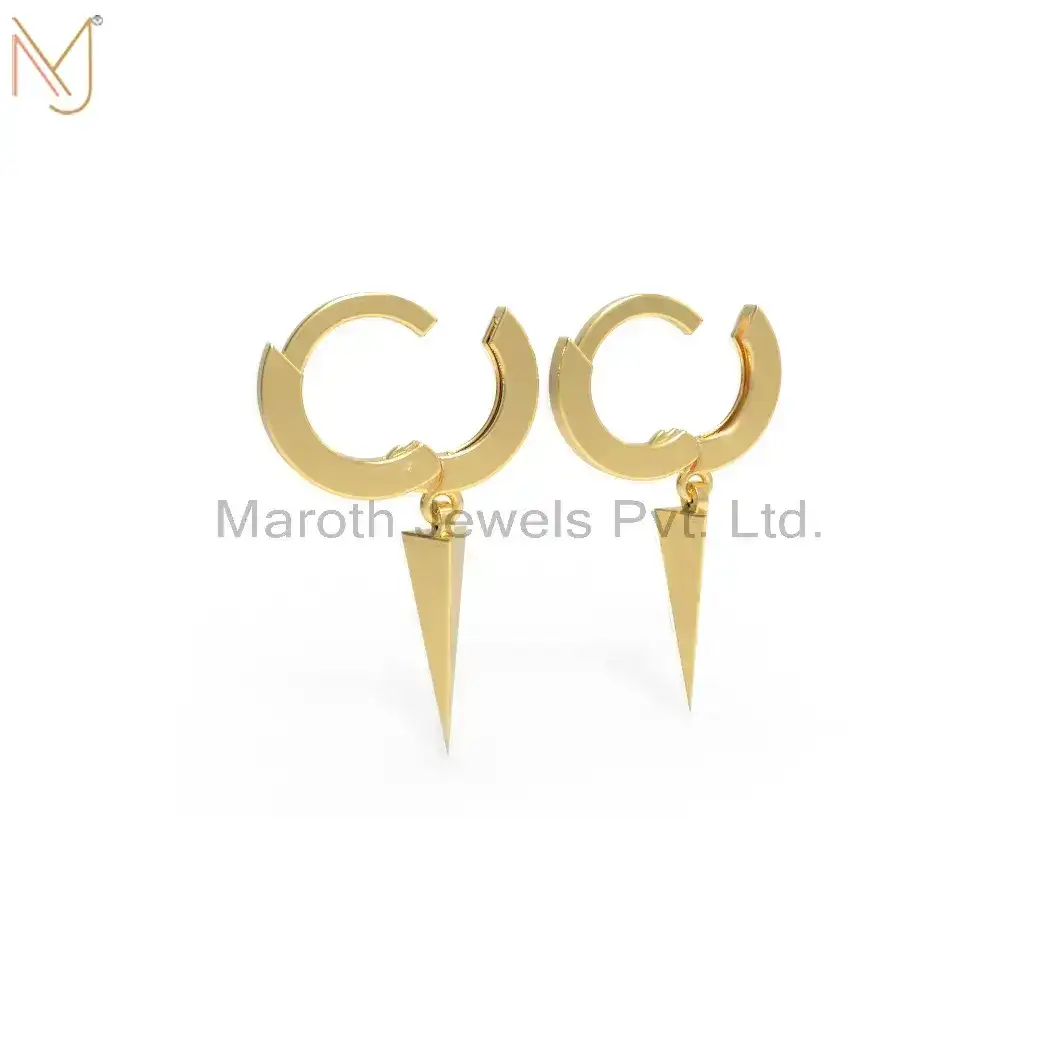 925 Silver Yellow Gold Plated Spike Earrings Manufacturer