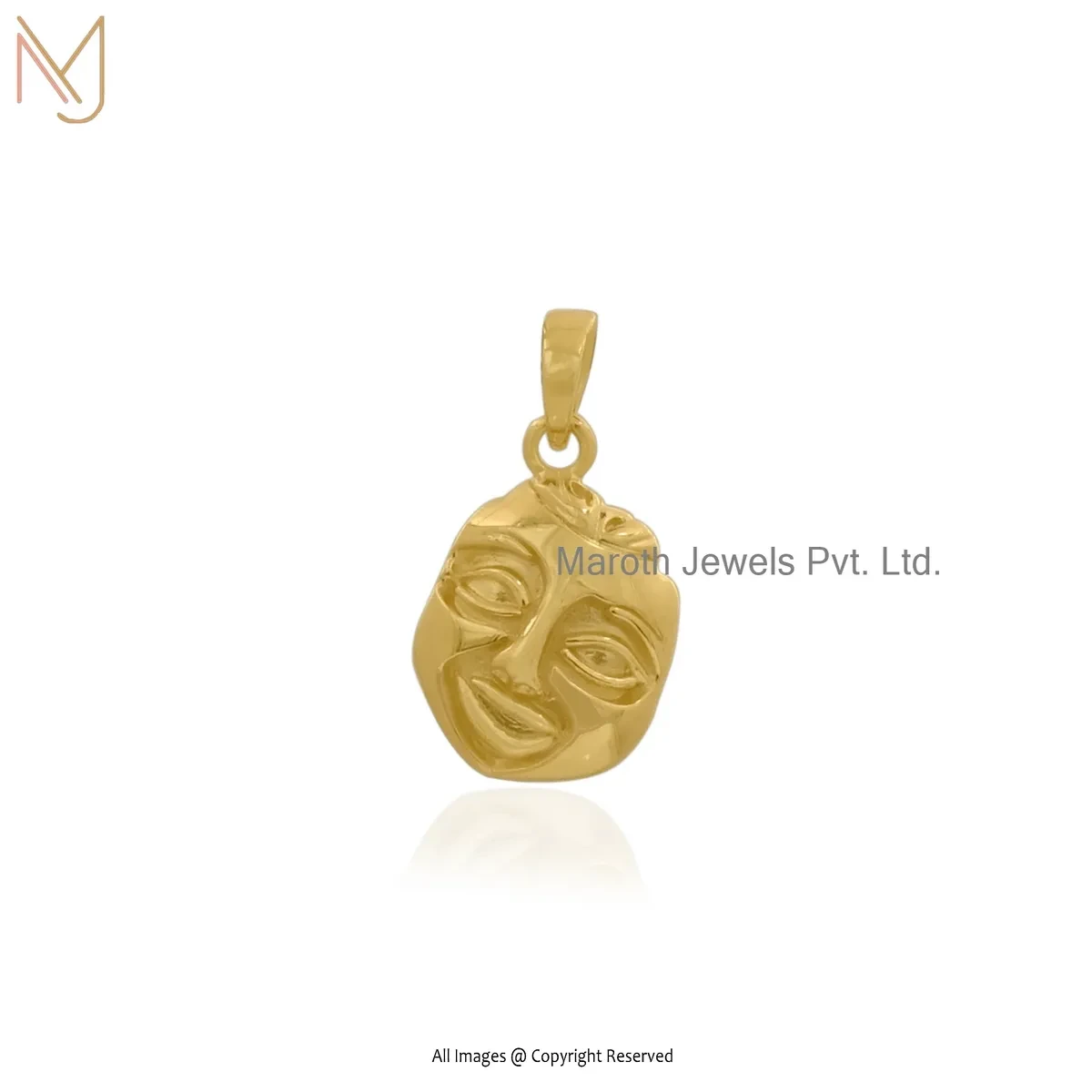 925 Silver Yellow Gold Plated Theater Mask Pendant Jewelry Supplier