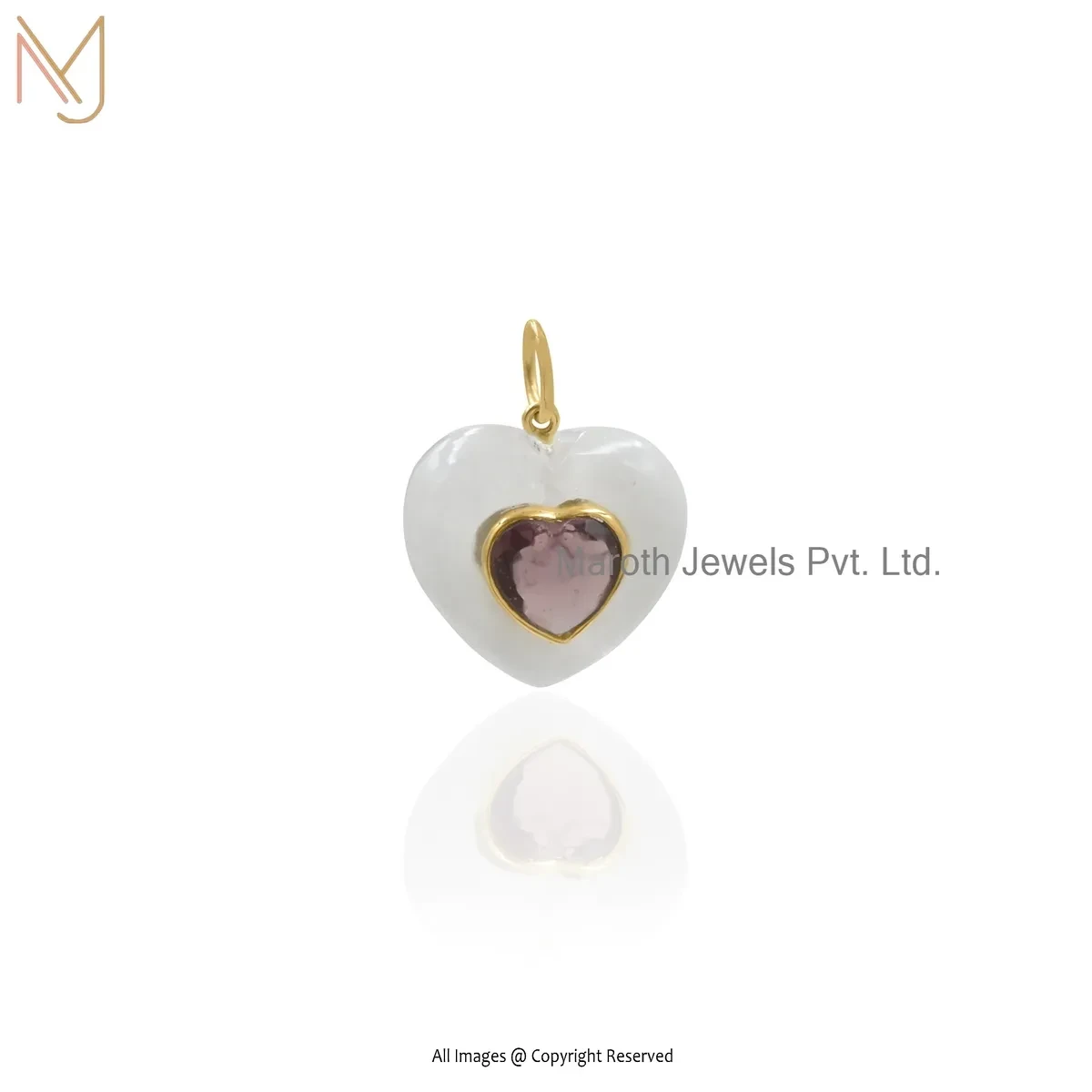 925 Silver Yellow Gold Plated Tourmaline & White Agate Gemstone Heart Pendant Jewelry Supplier