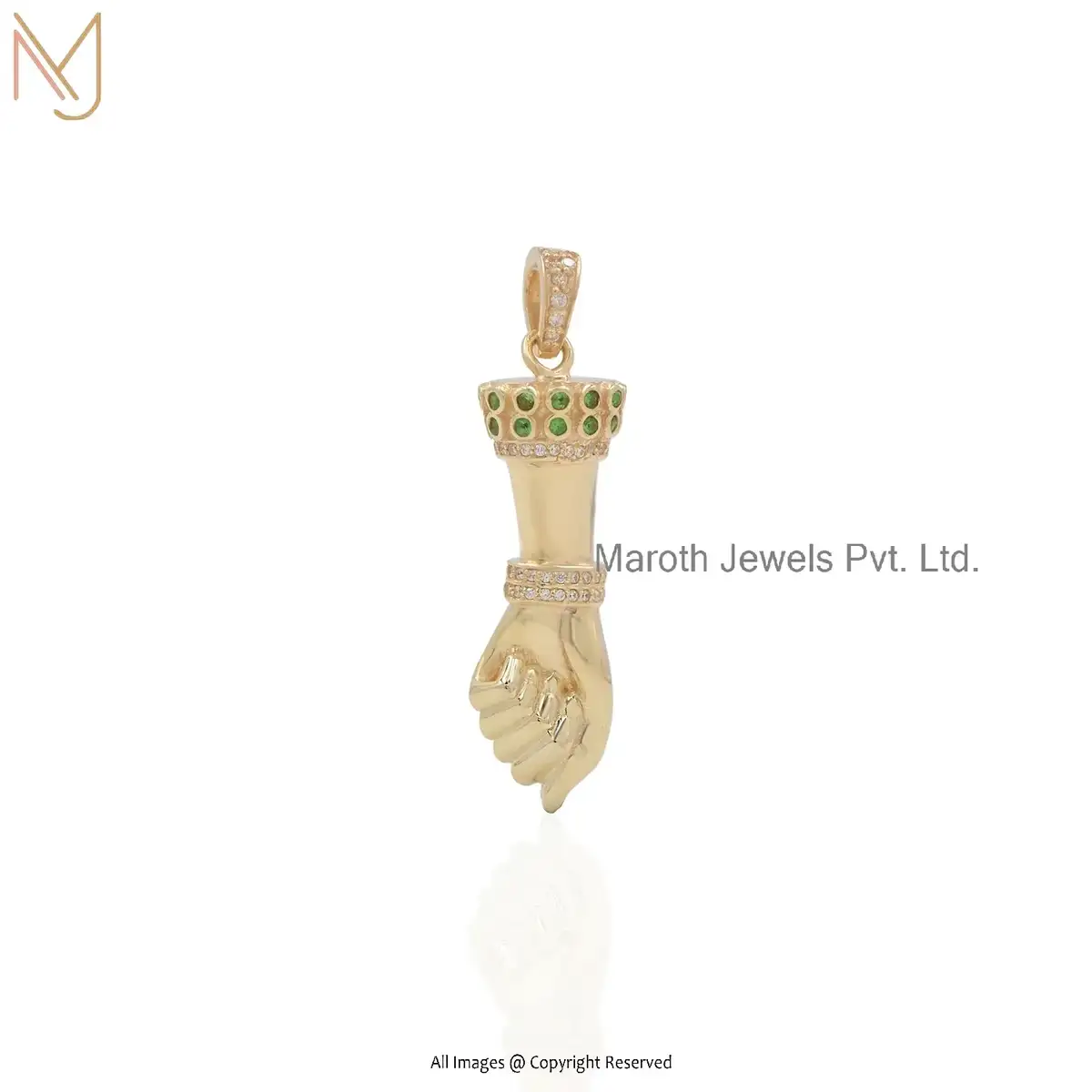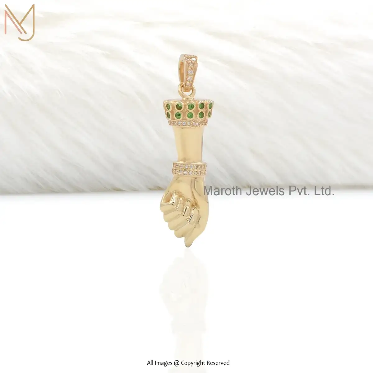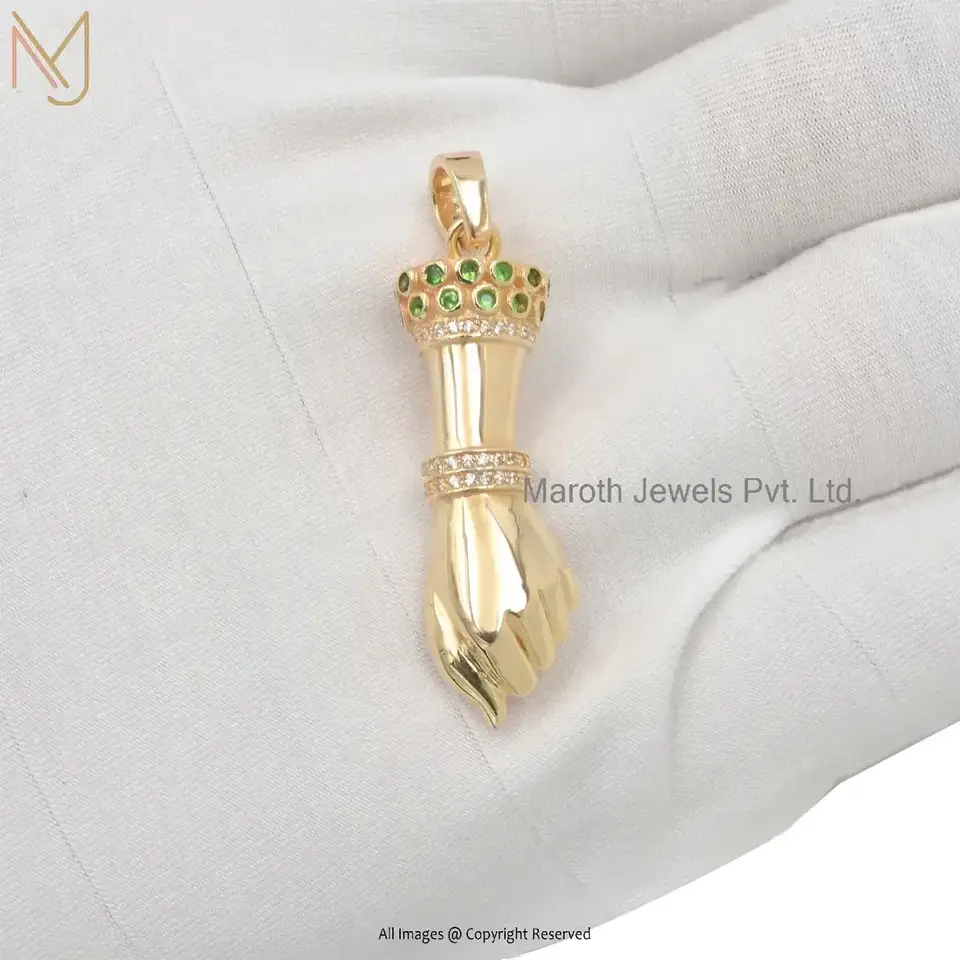 925 Silver Yellow Gold Plated Tsavorite And Diamond Figa Hand Charm Pendant USA