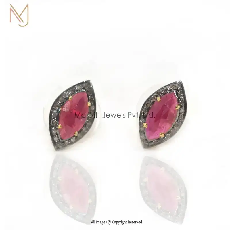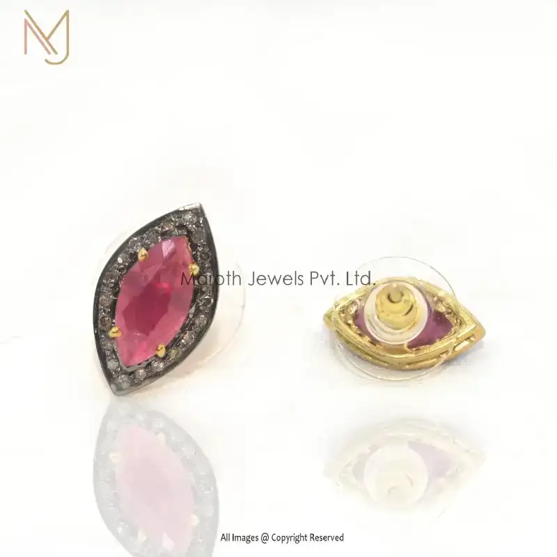 925 Silver Yellow Gold Rhodium Plated Pave Diamond Ruby Gemstone Studs Earrings Custom Jewelry