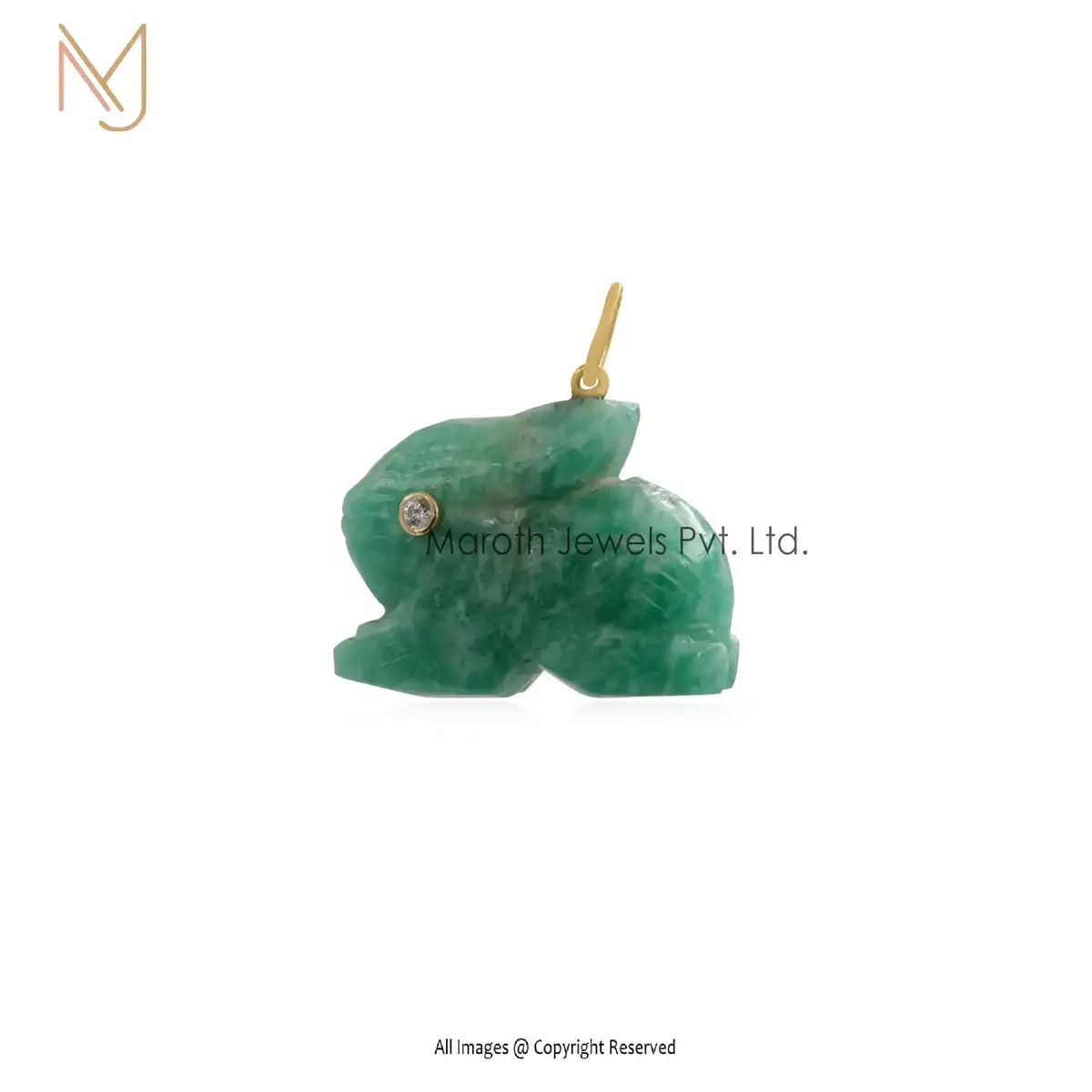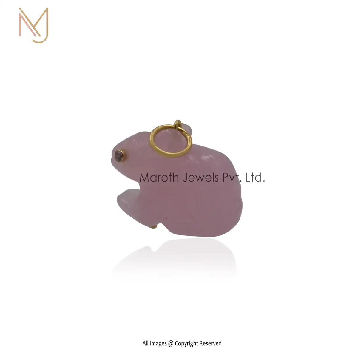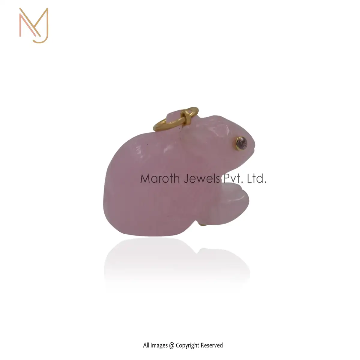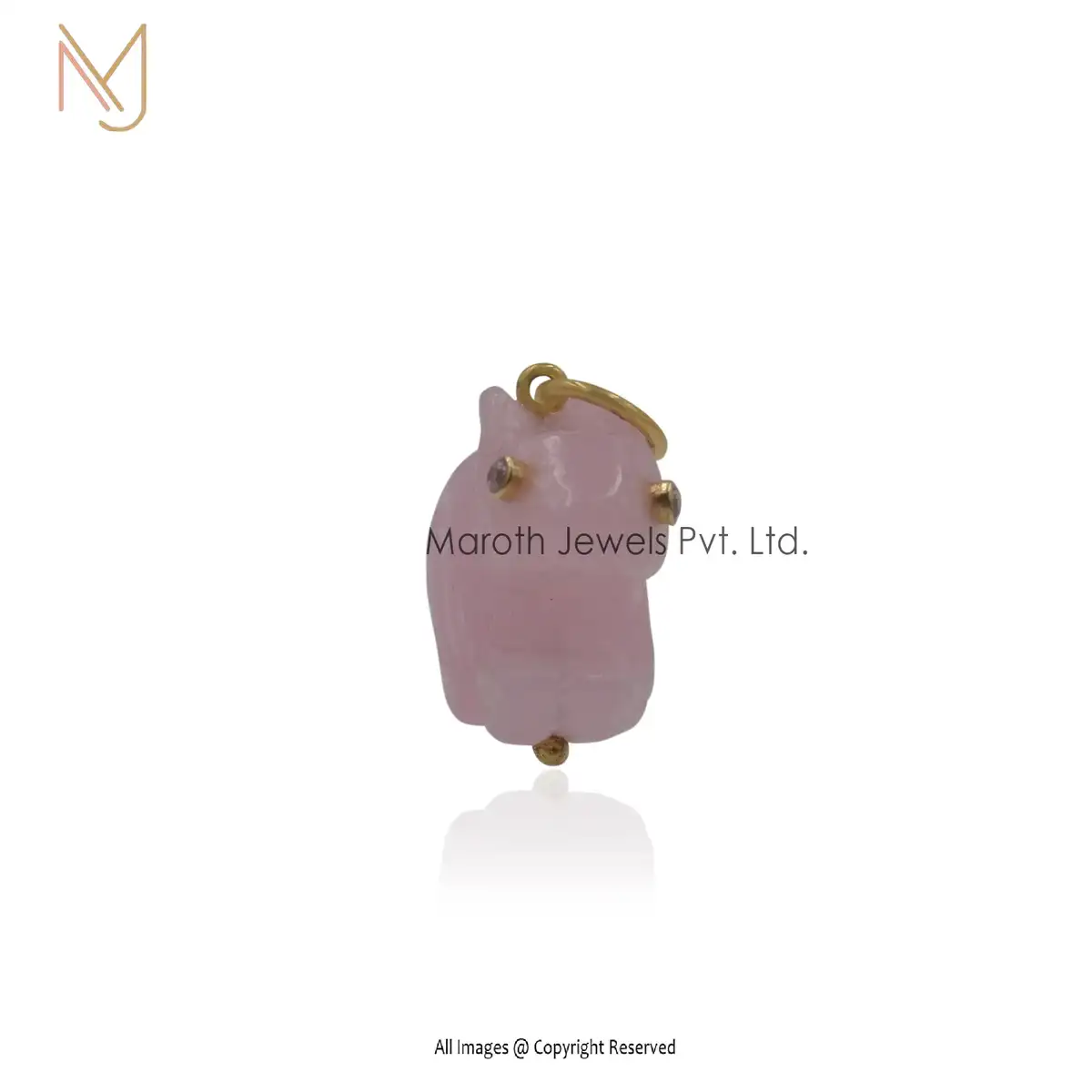 925 Silver Yellow Gold Rose Quartz Rabbit Pendant Jewelry Manufacturer