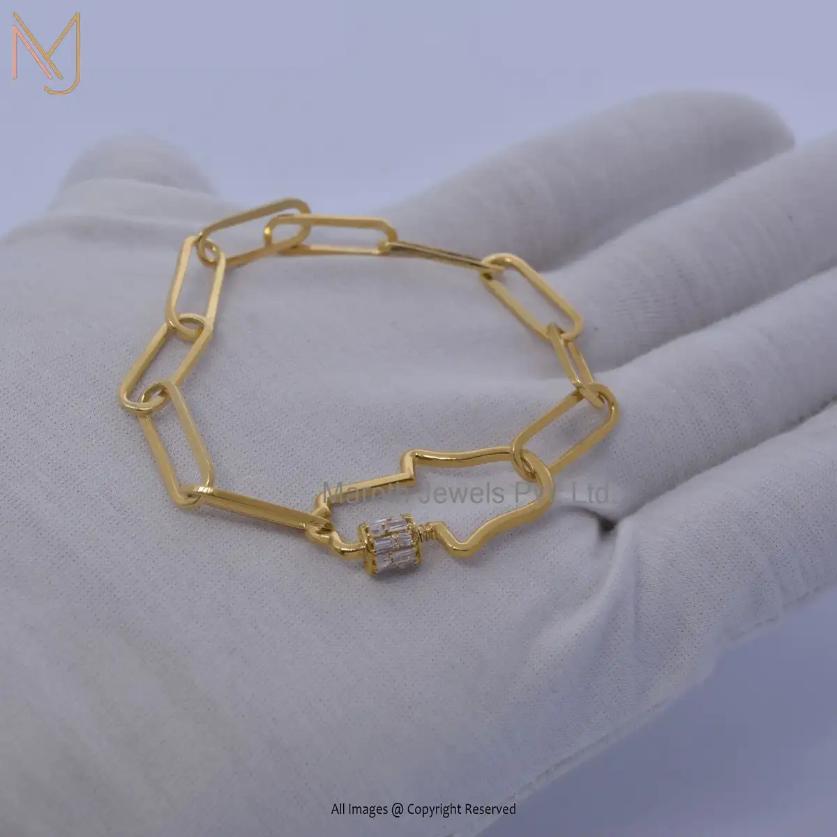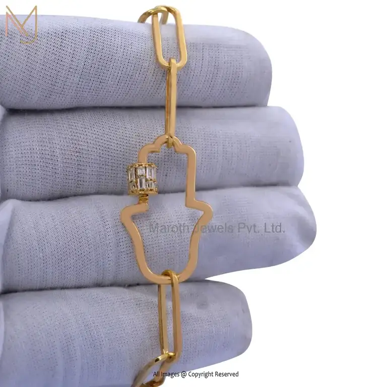925 Silver Yellow Gold White Topaz Baguettes Hamsa Paperclip Chain Bracelet Manufacturer