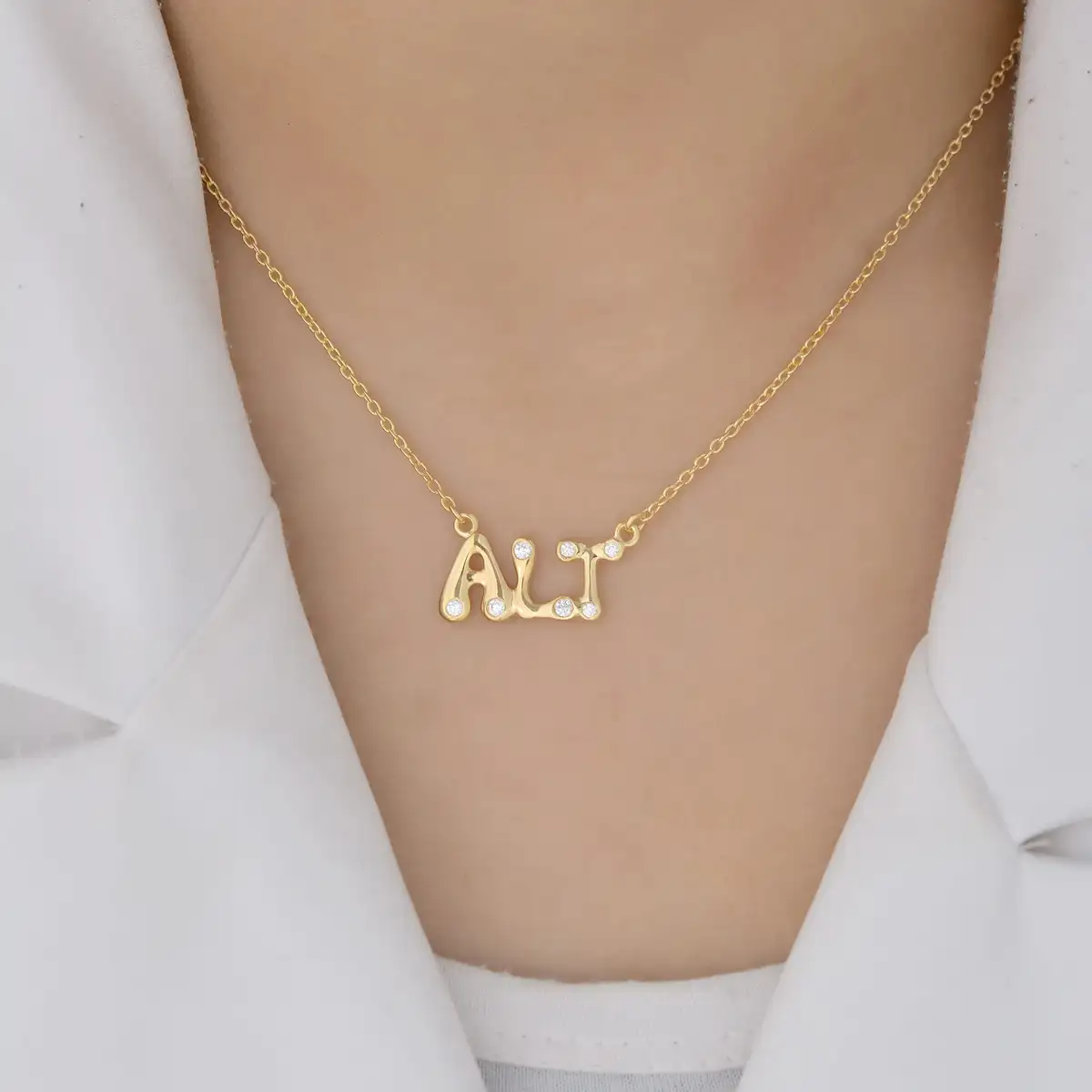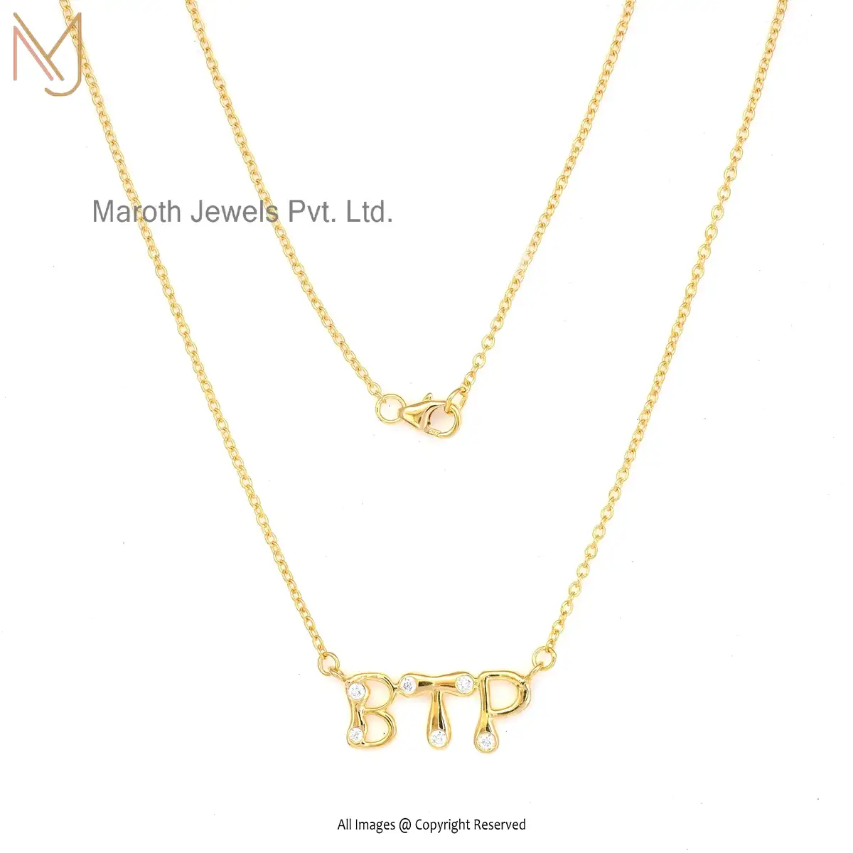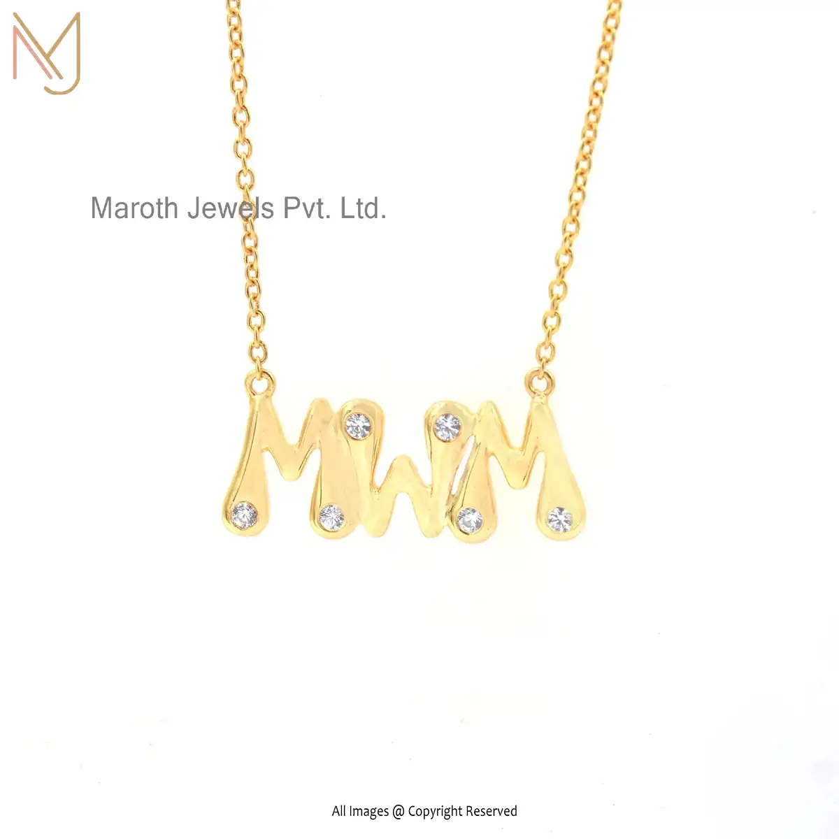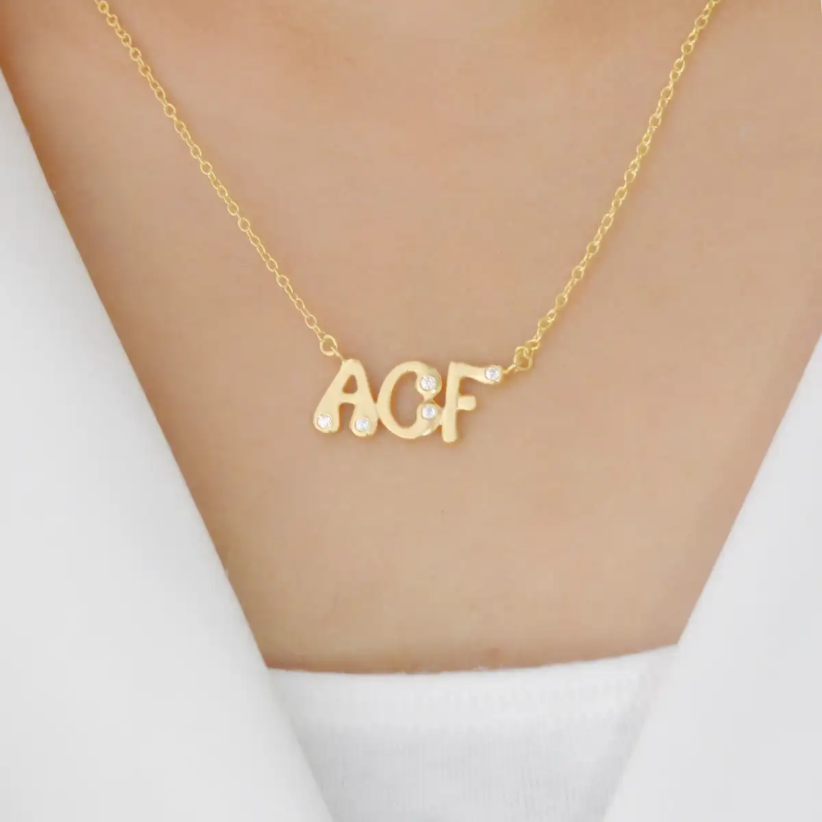 925 Silver Yellow Gold White Topaz Three Letter Pendant Necklace USA