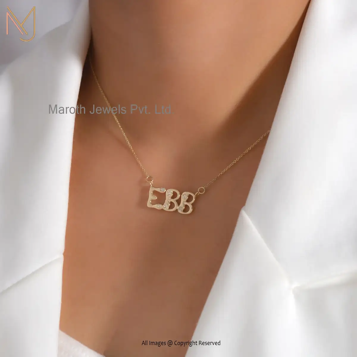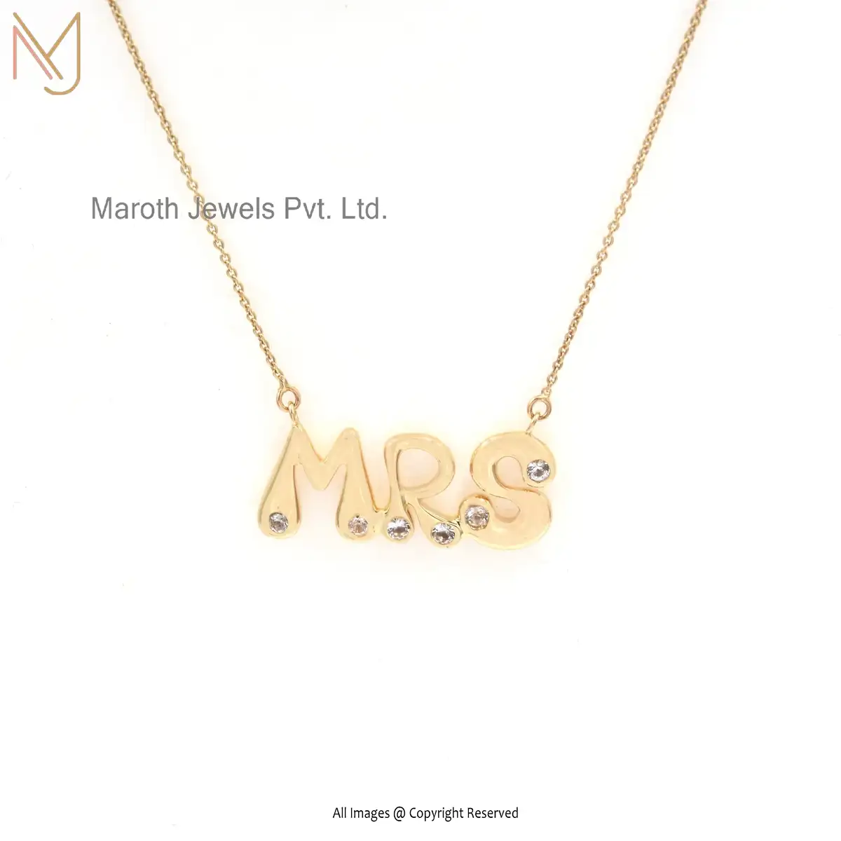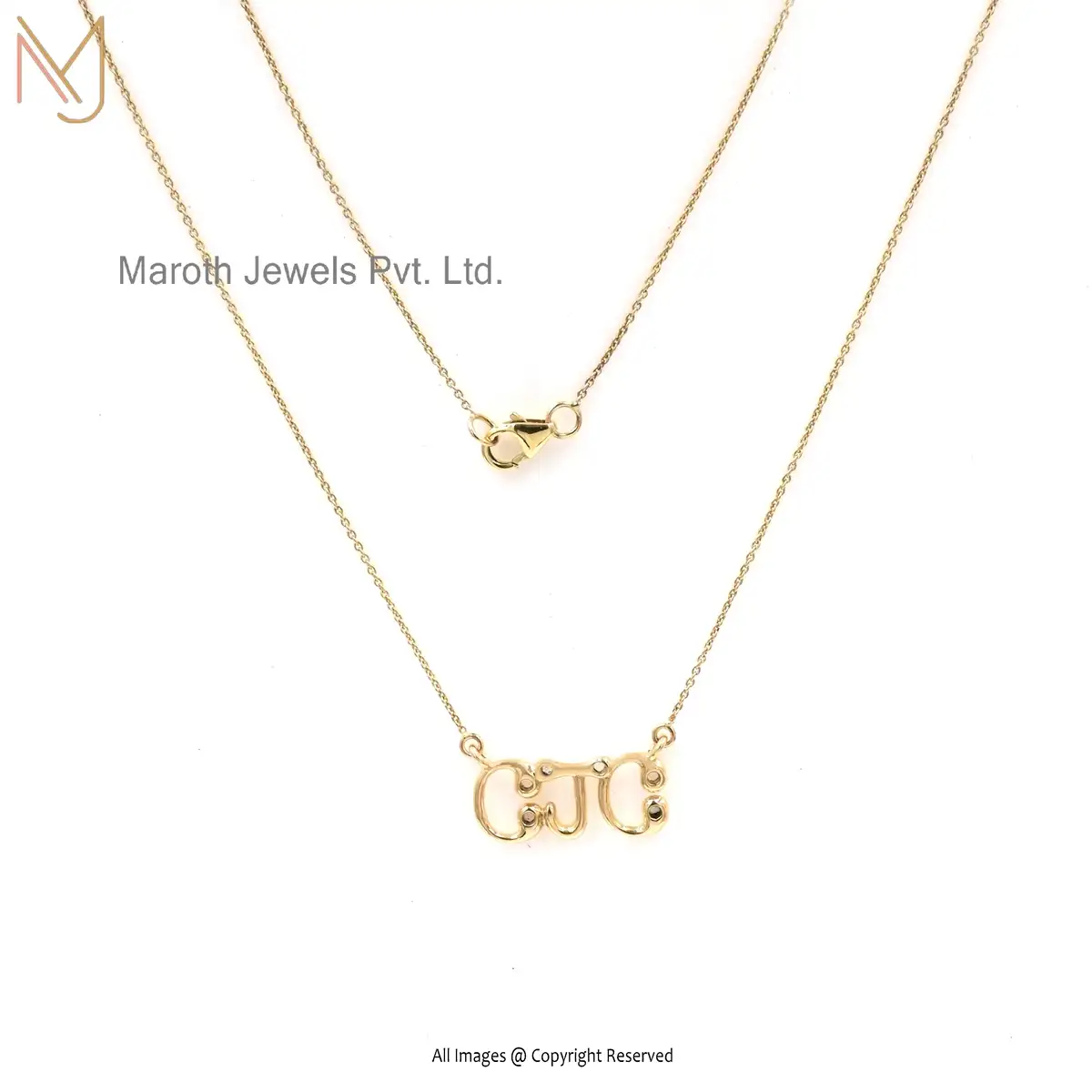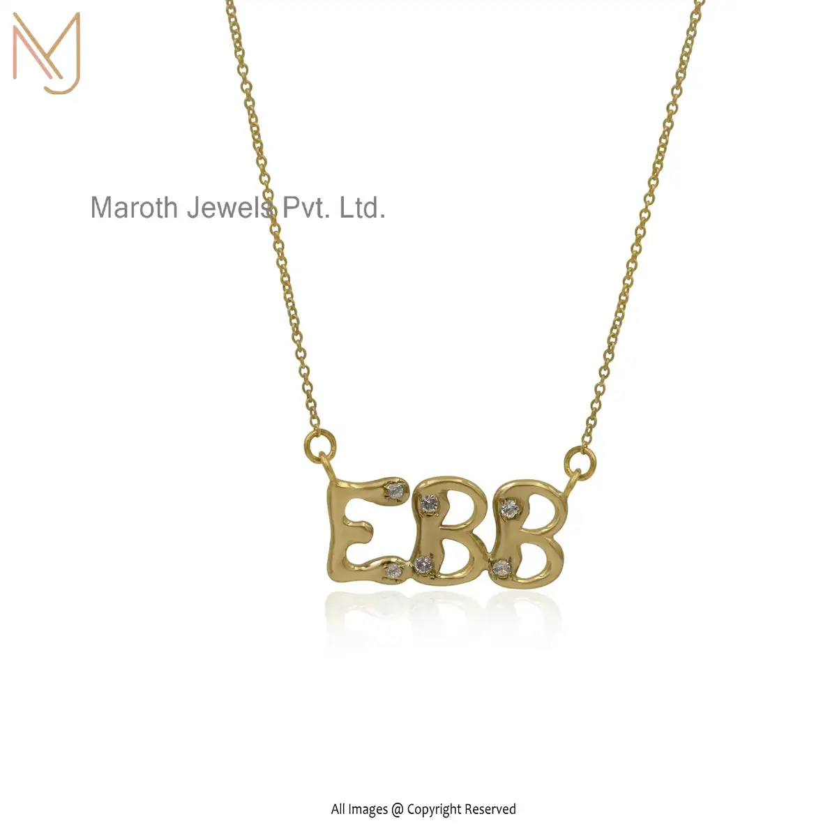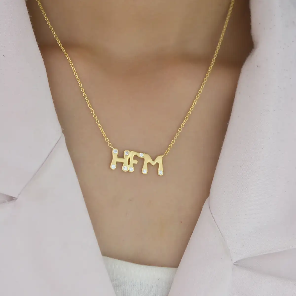 925 Silver Yellow Gold White Topaz Three Letter Pendant Necklace USA