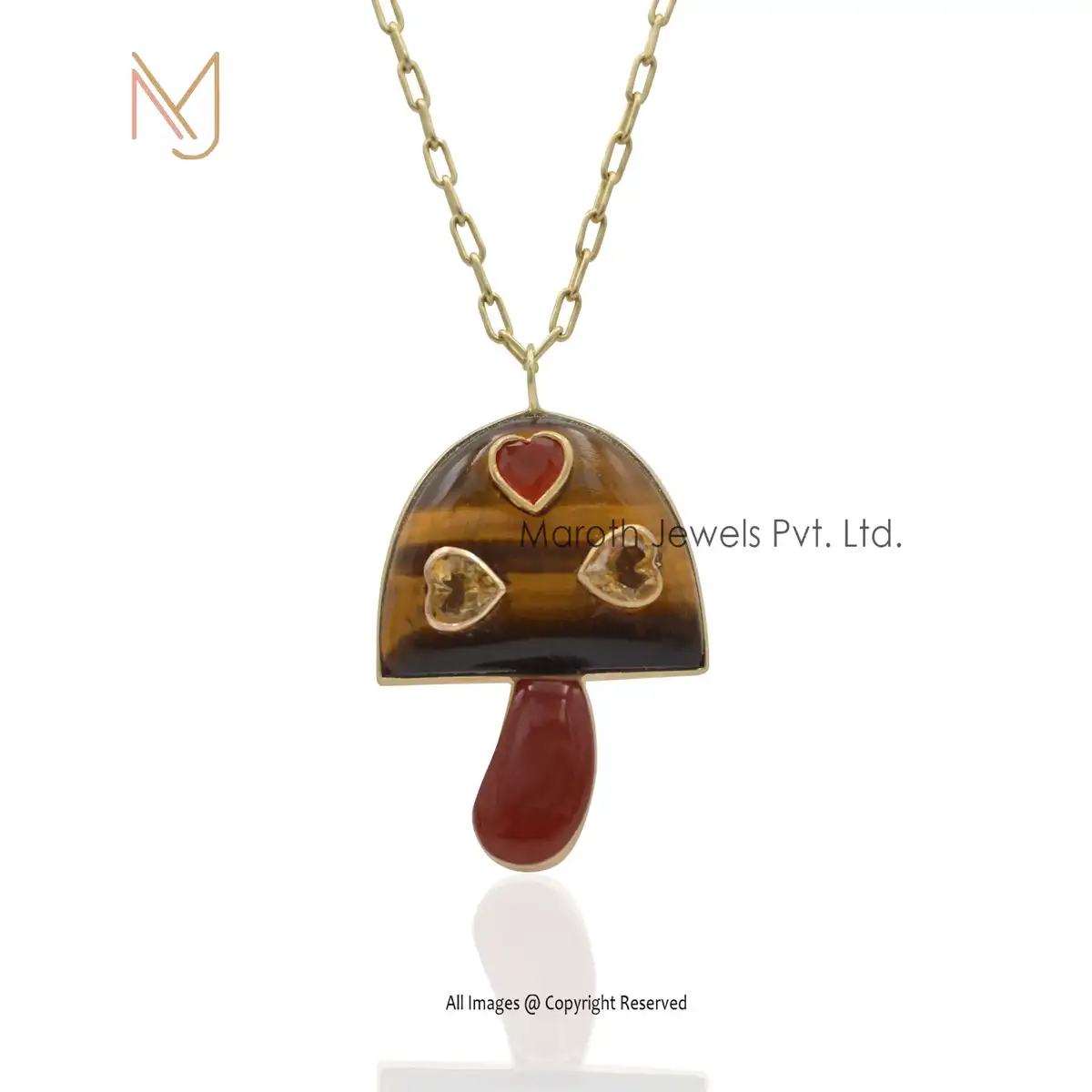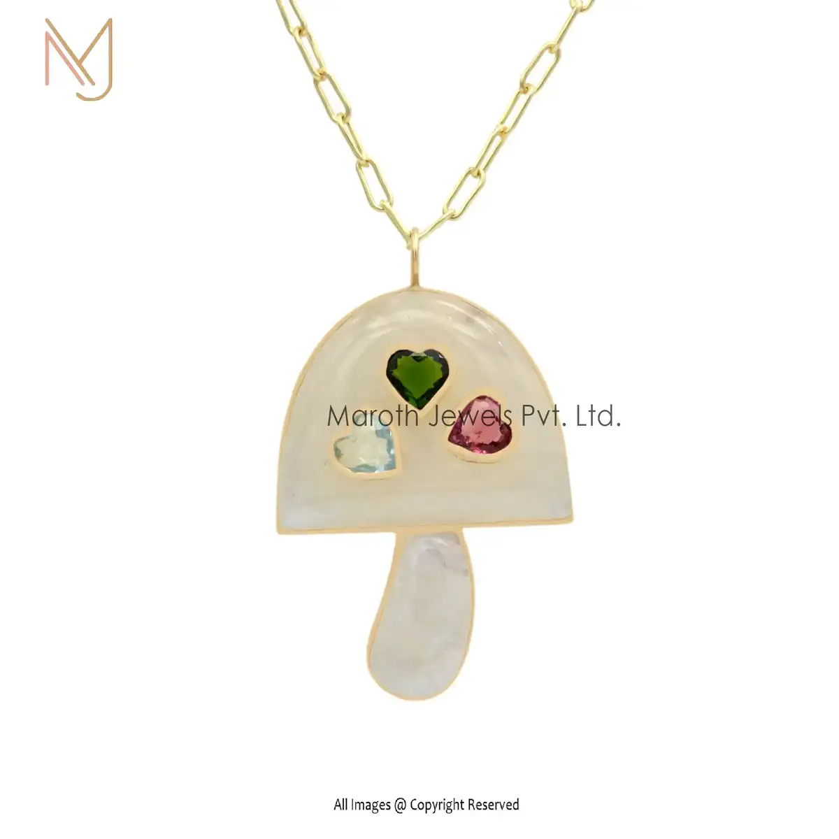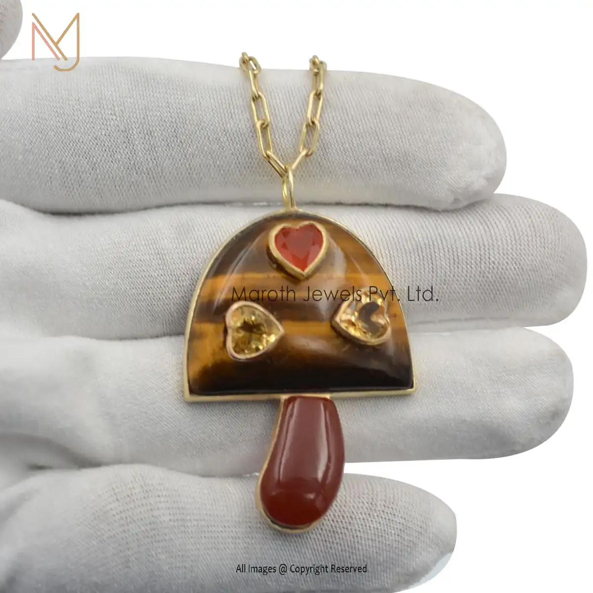 925 Silver Yellow Quartz with Synthic Coral and Natural Tourmaline Hearts Mushroom Pendant Manufacturer