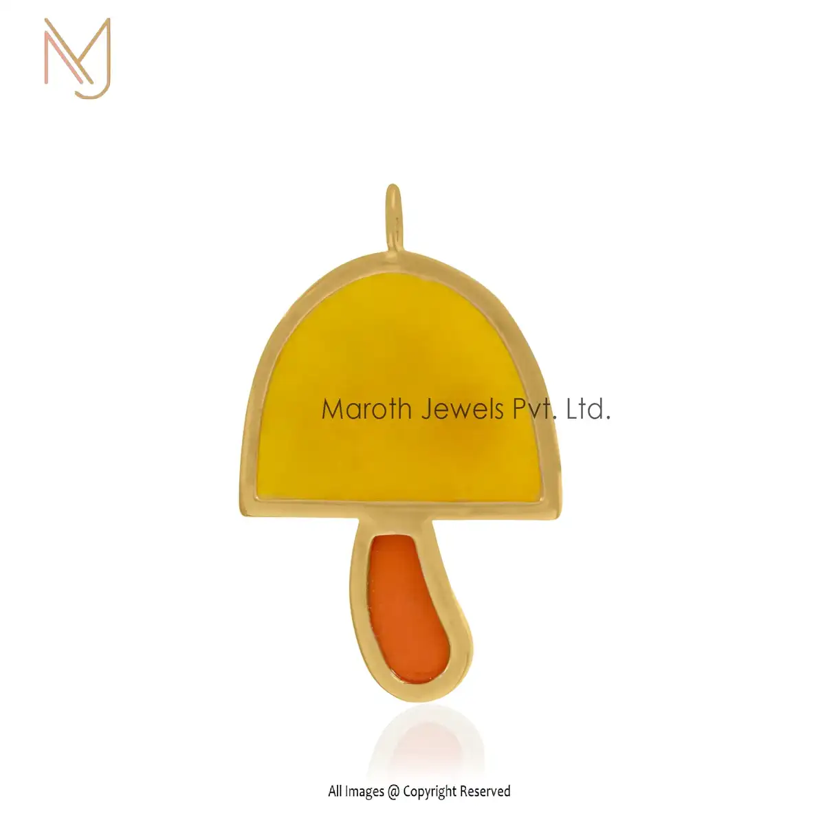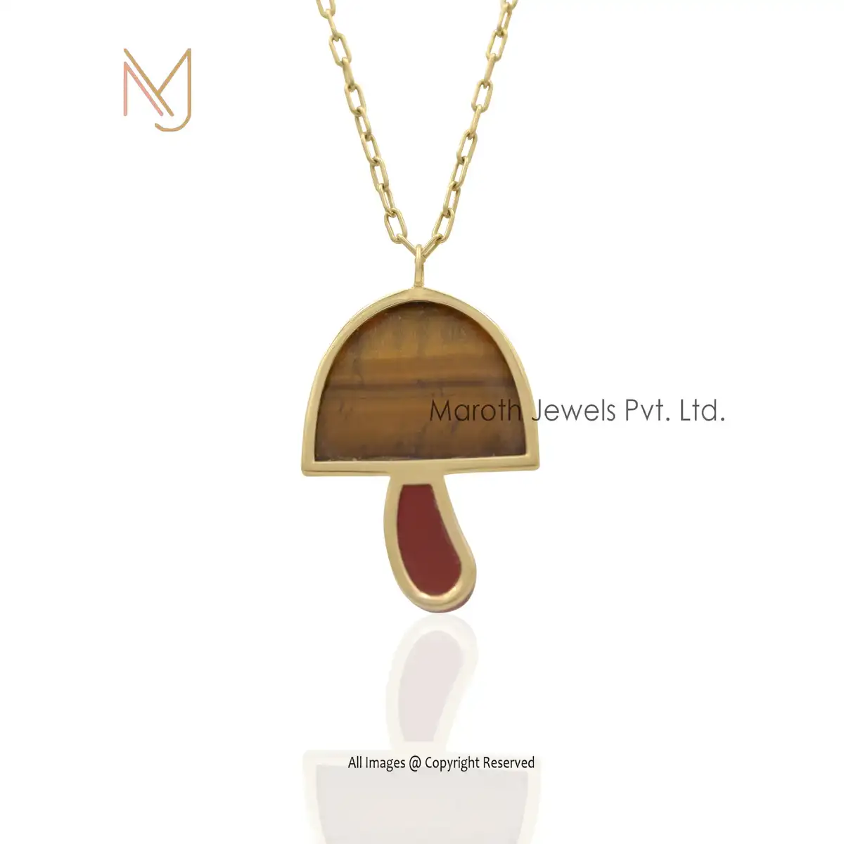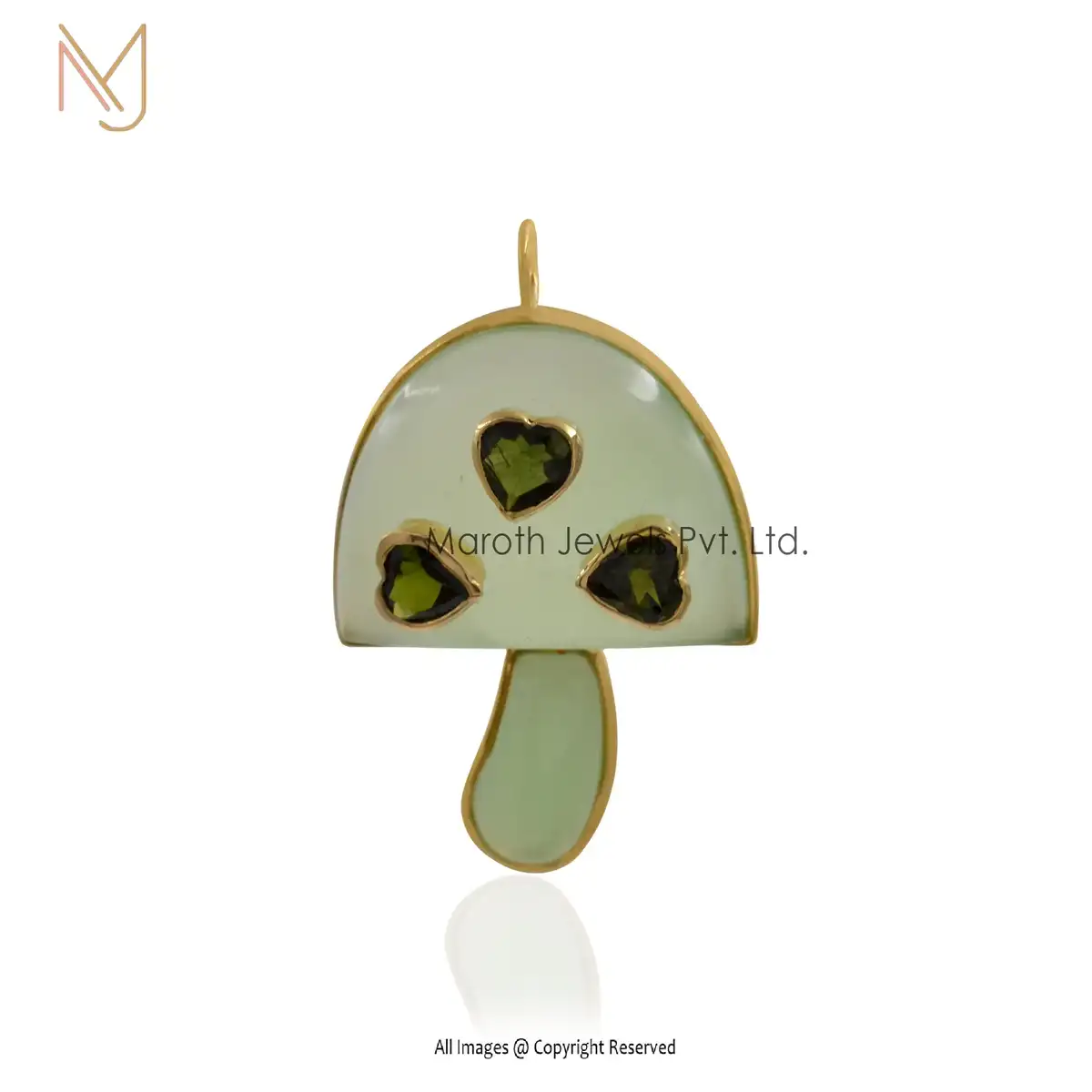 925 Silver Yellow Quartz with Synthic Coral and Natural Tourmaline Hearts Mushroom Pendant Manufacturer