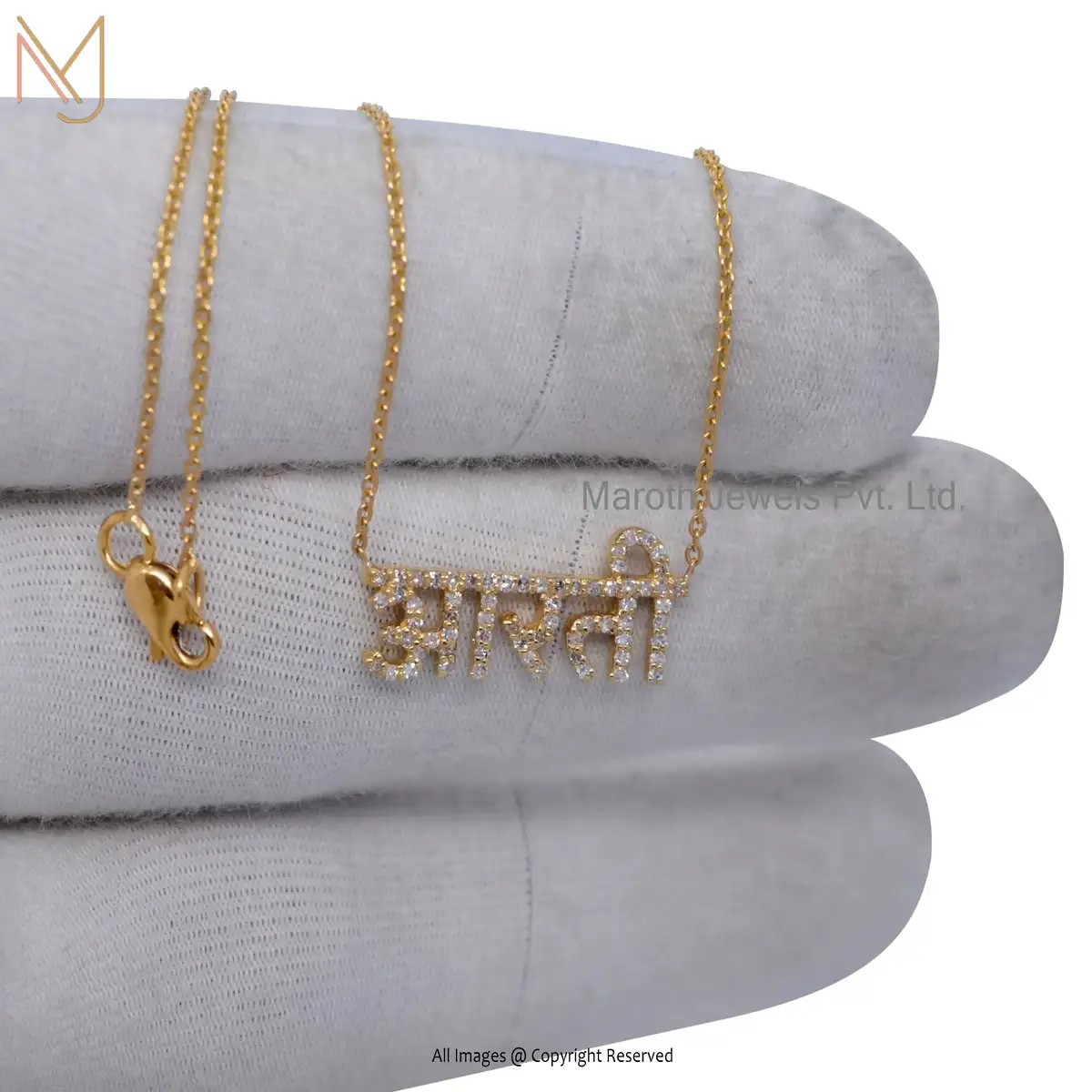 925 Silver Yelow Gold SI GH Diamond Hindi Letter AARTI Name Plate Pendant Necklace USA