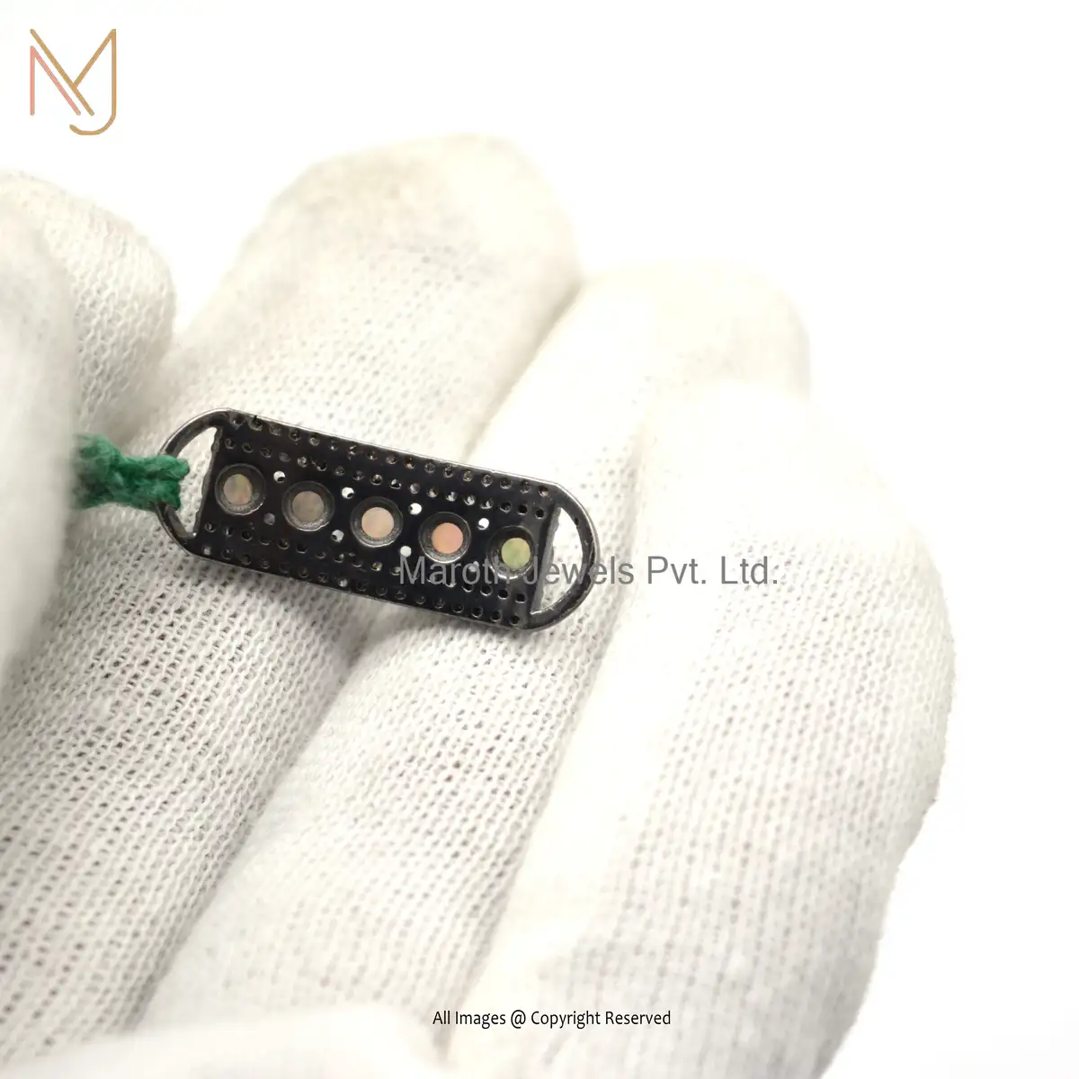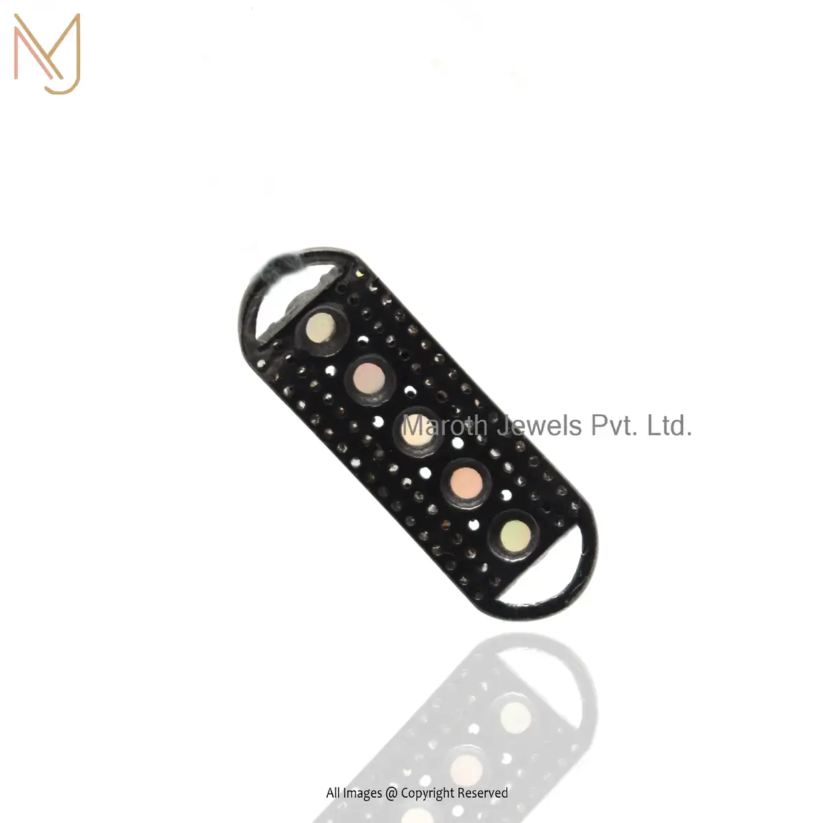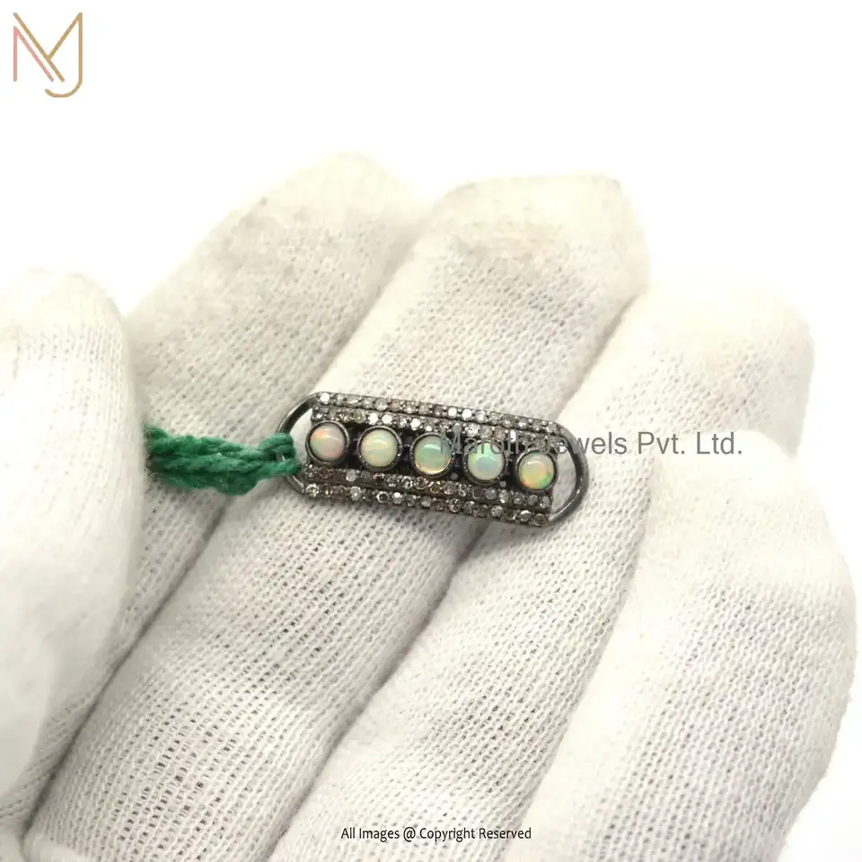 925 Sterling Silver Black Rhodium Plated Pave Diamond Opal Gemstone Connectone Jewelry USA