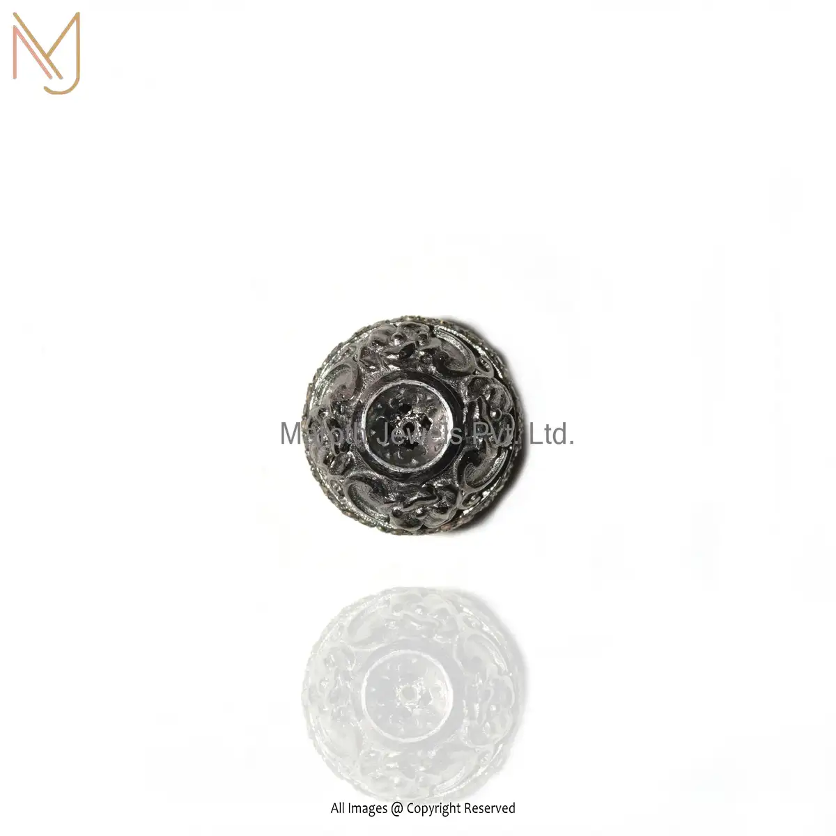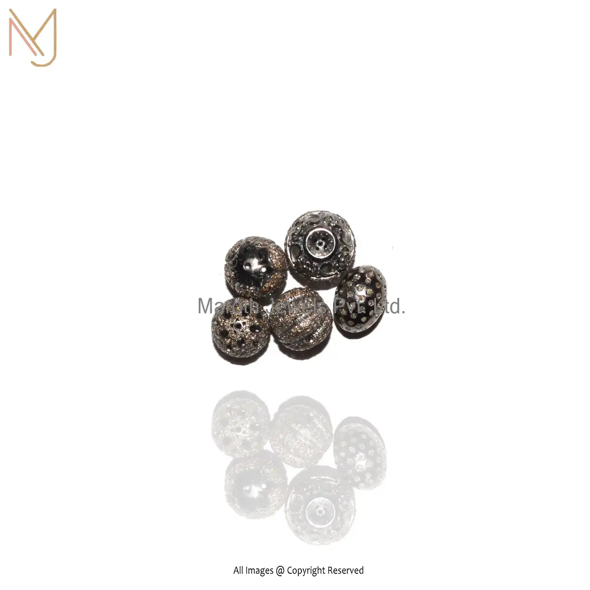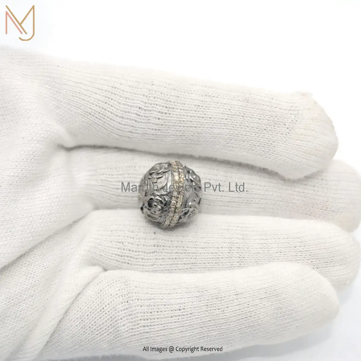 925 Sterling Silver Pave Diamond Round Beads Handmade Connector Finding Jewelry USA