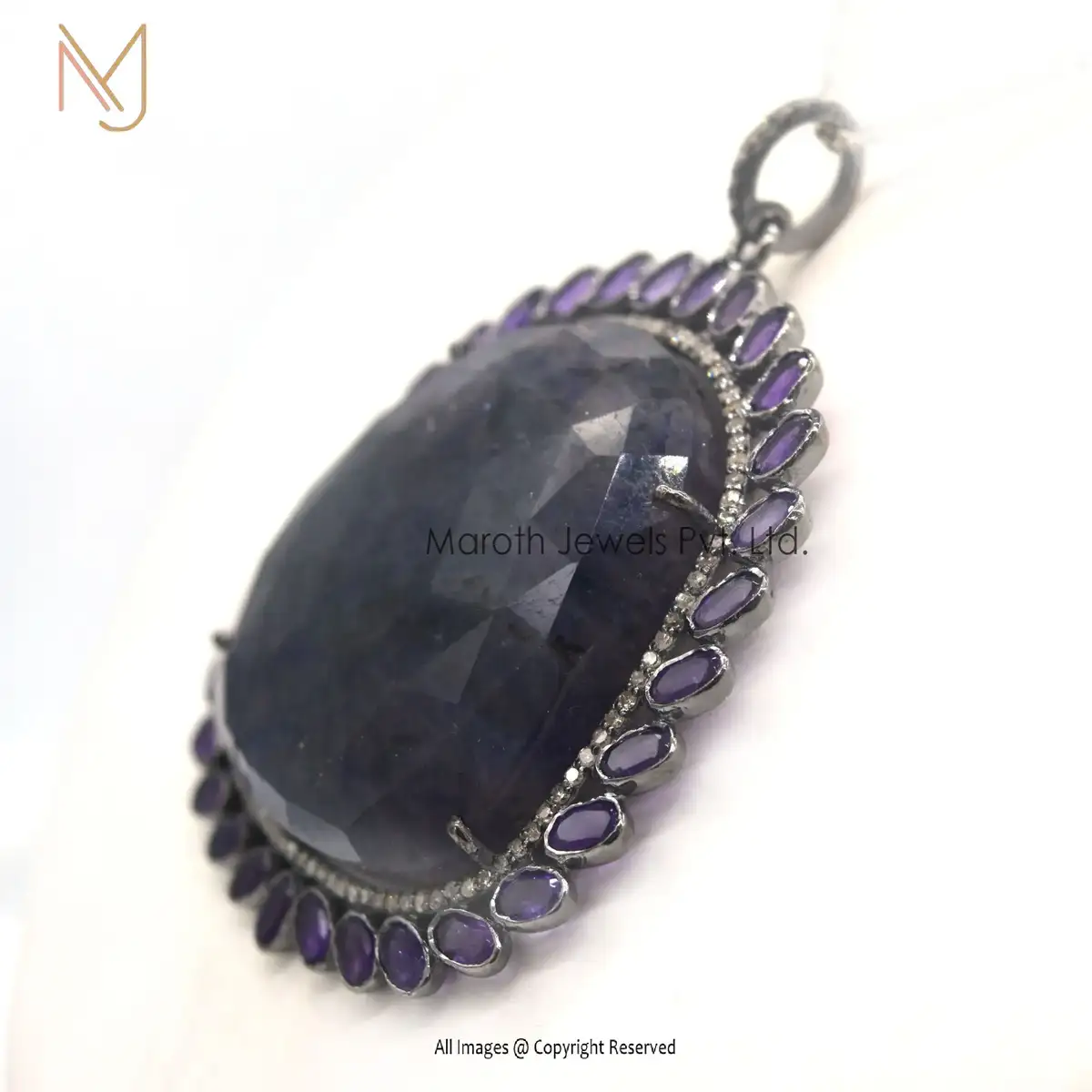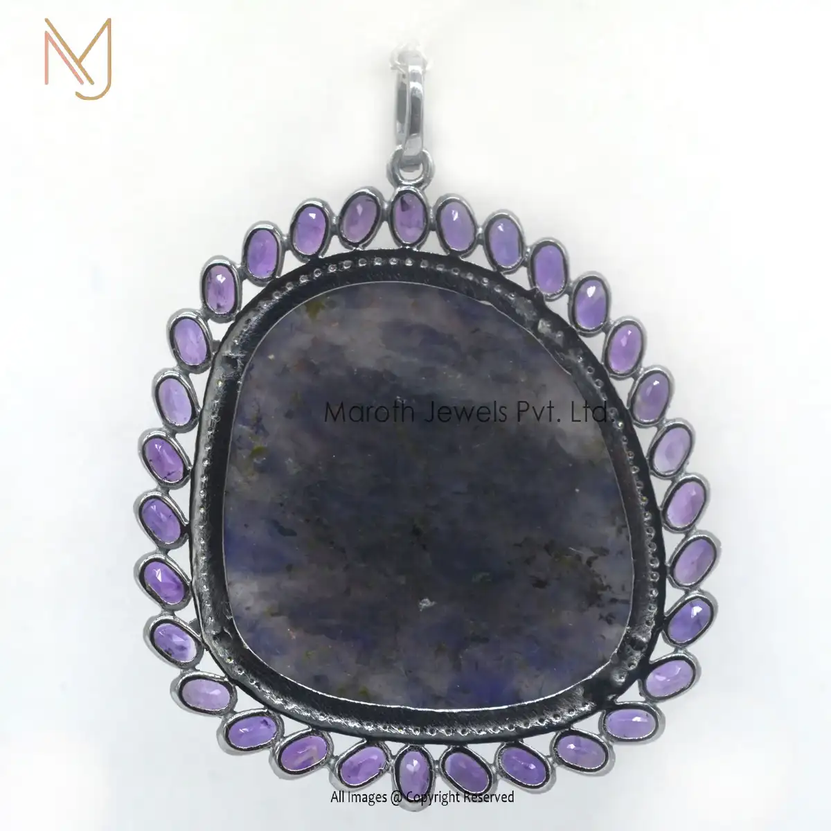925 Sterling Silver Rhodium Pave Diamond Amethyst Gemstone Shell Pendant Manufacturer
