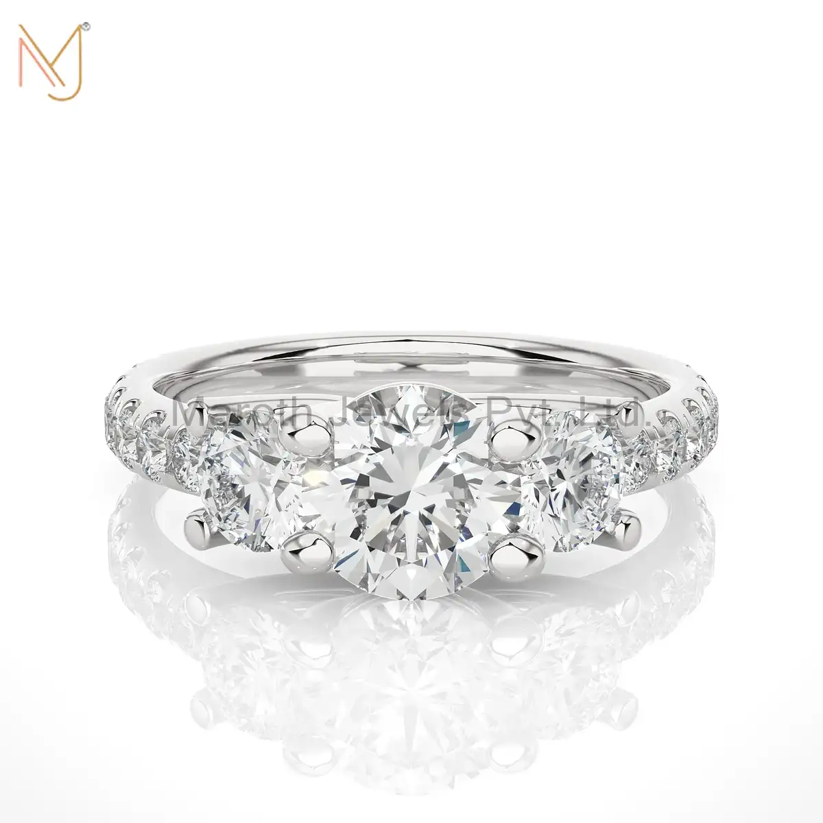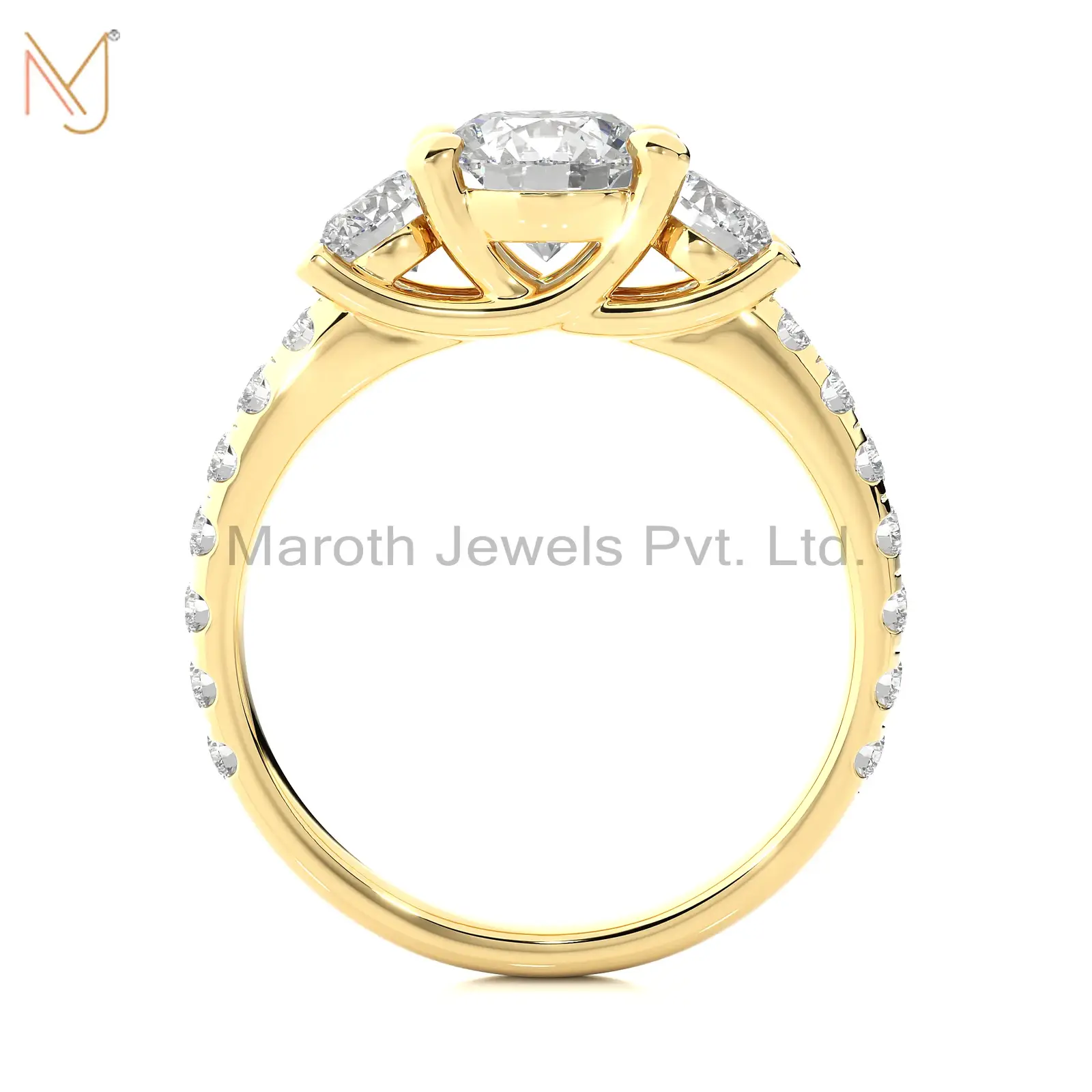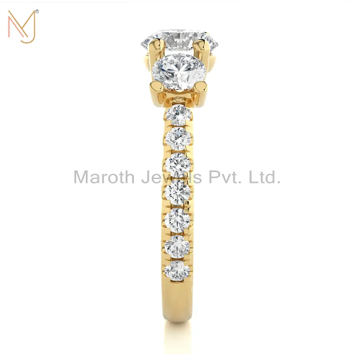925 Silver Yellow Gold Moissanite Diamond Round Ring Wholesale MJR1875