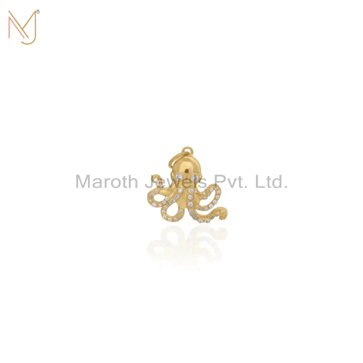 925 Sterling Silver Yellow Gold Moissanite Octopus Charm Pendant Custom Jewelry