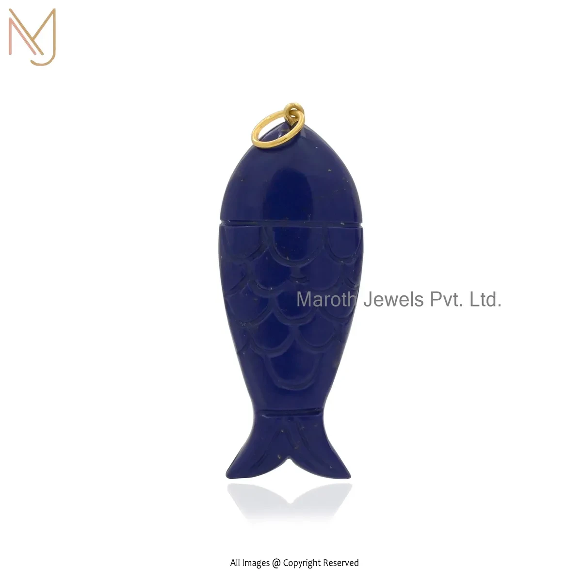 925 Sterling Silver Yellow Gold Plated Lapiz Lazuli And White CZ Fish Pendant USA
